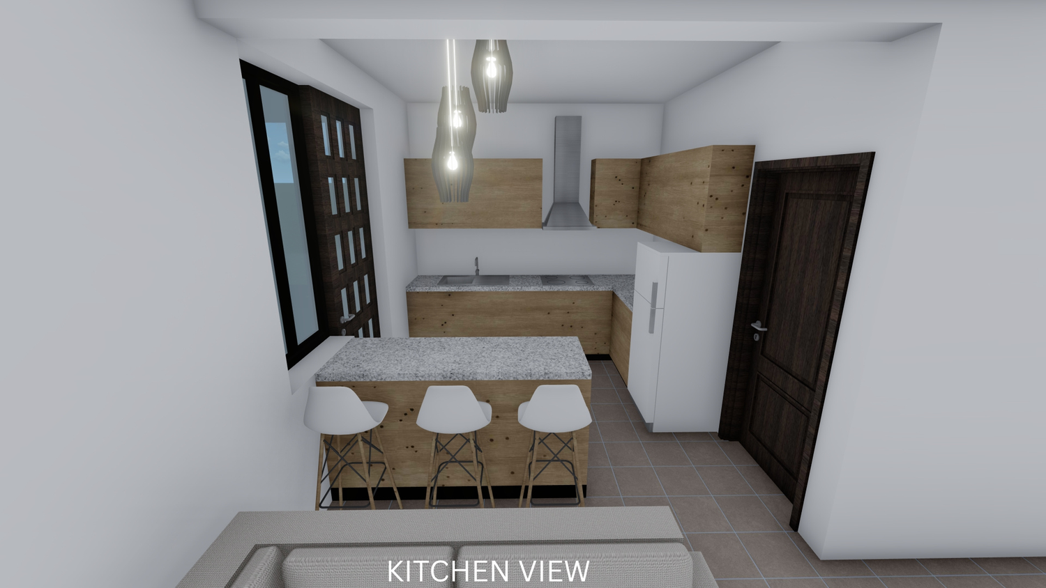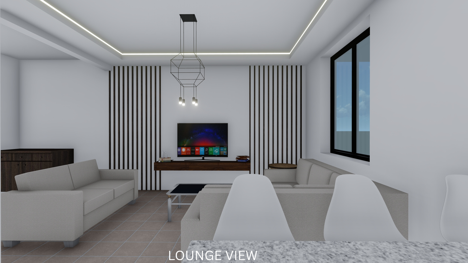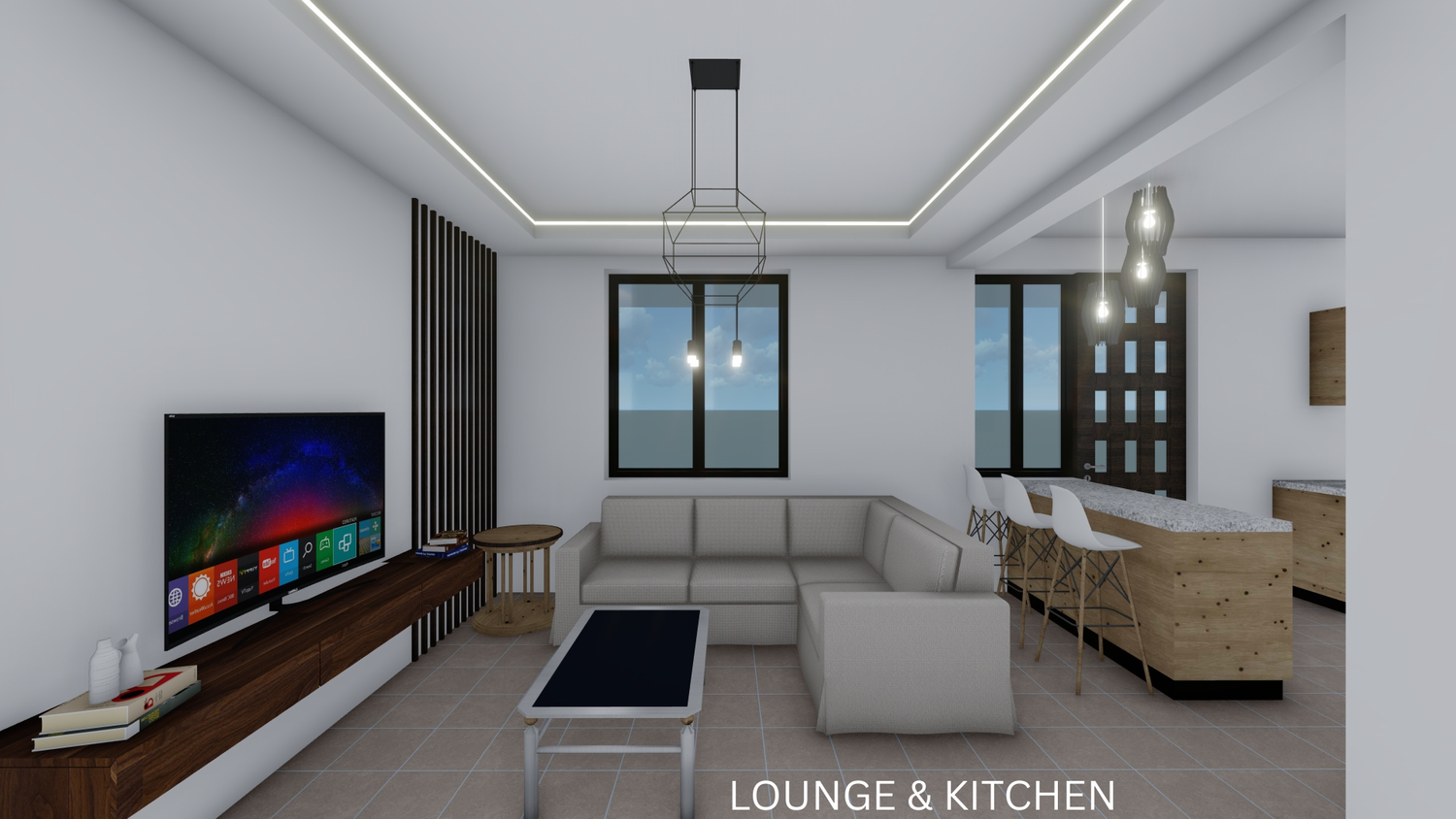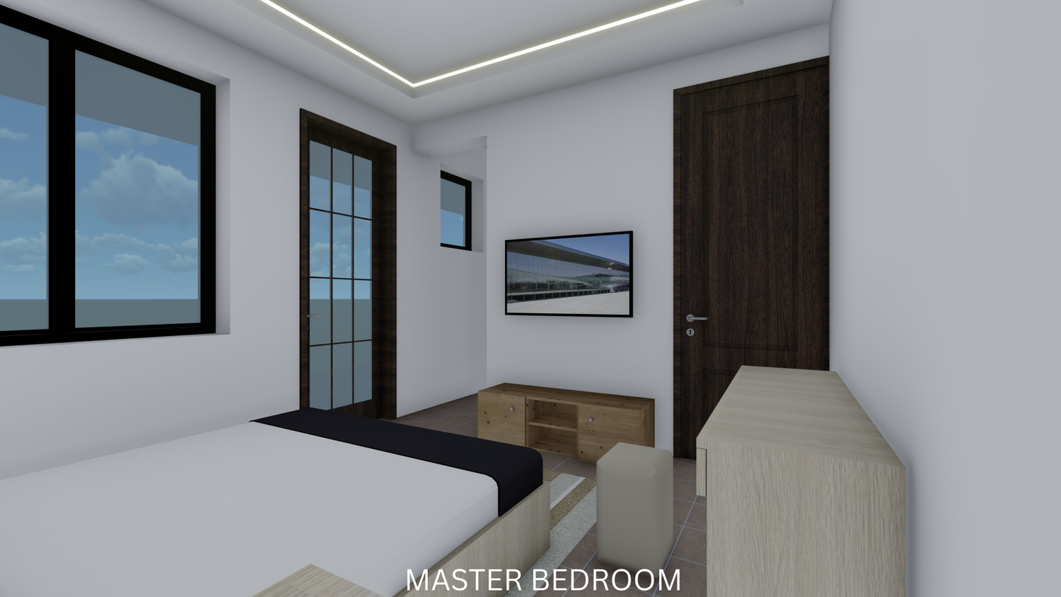 The proposal reorganizes the internal layout in accordance with the client’s brief. A foyer has been introduced to streamline circulation and reduce the lounge area, while the kitchen has been redesigned to include a functional island. The storage room is now adequate and useful. A new modern staircase enhances the spatial quality, with the void underneath efficiently utilized for a WC. The layout now features two bedrooms on the first floor, one of which is a master bedroom with a walk-in closet and ensuite bathroom. Additionally, a laundry area has been added on the first floor for convenient access to the balconies.