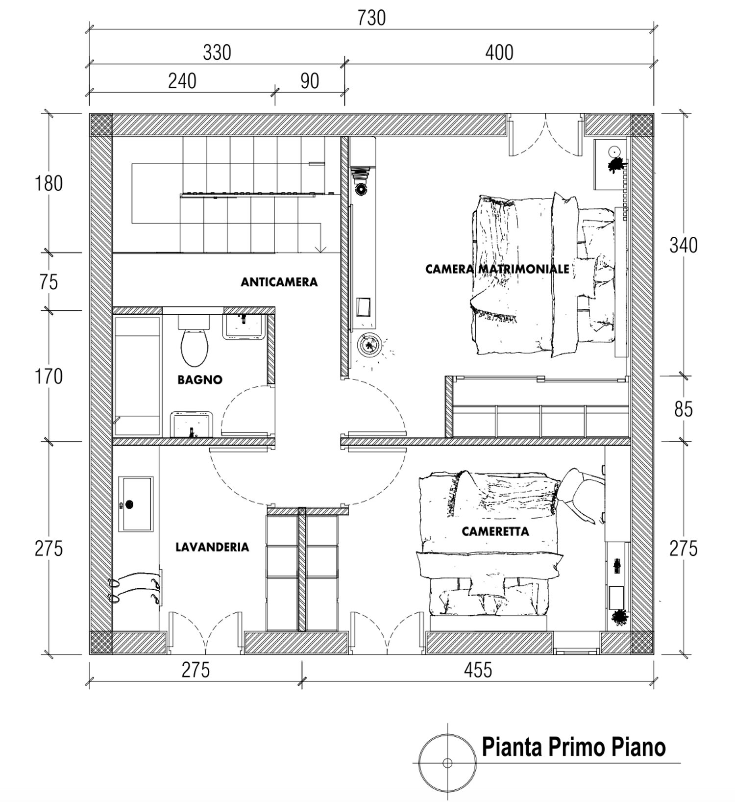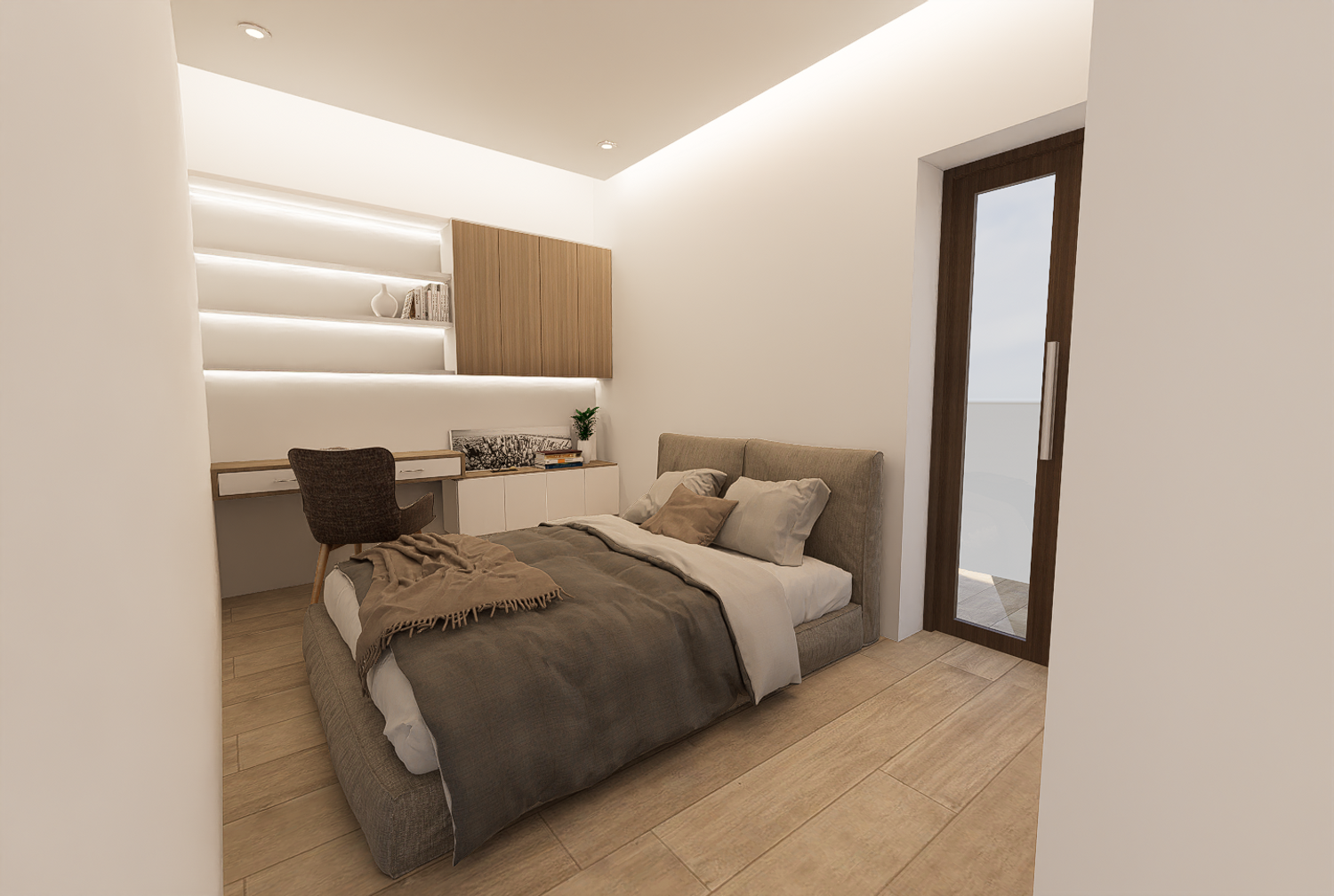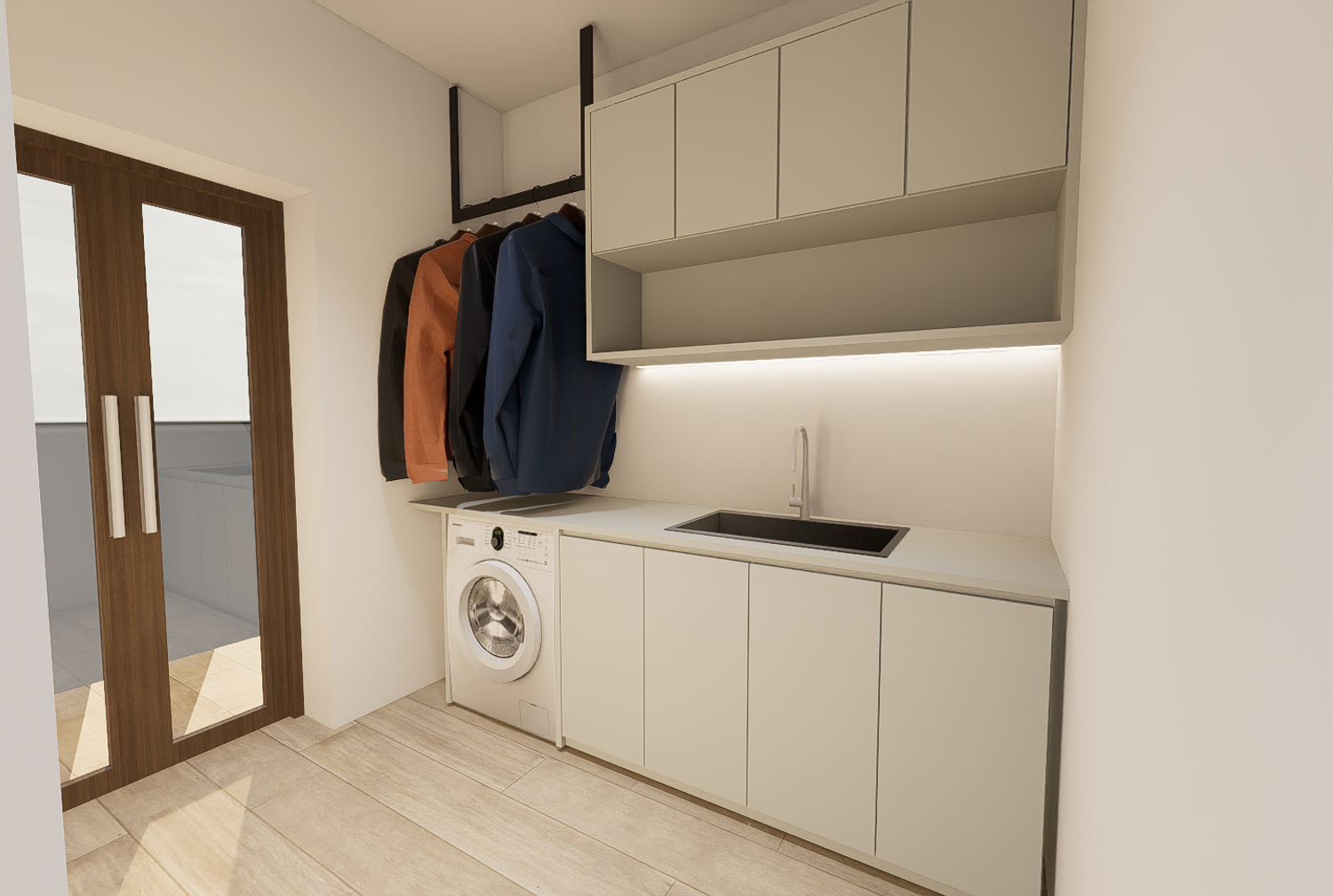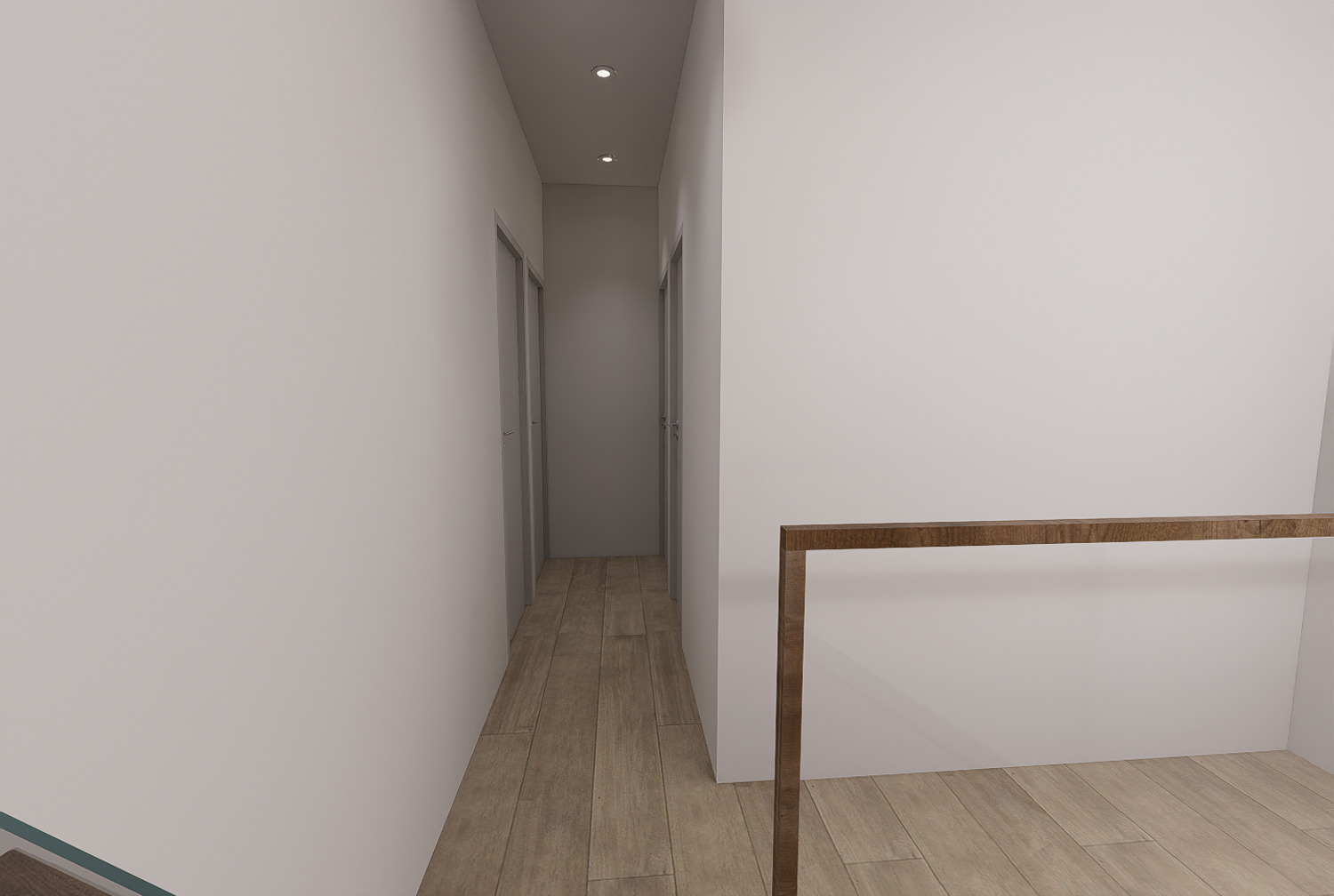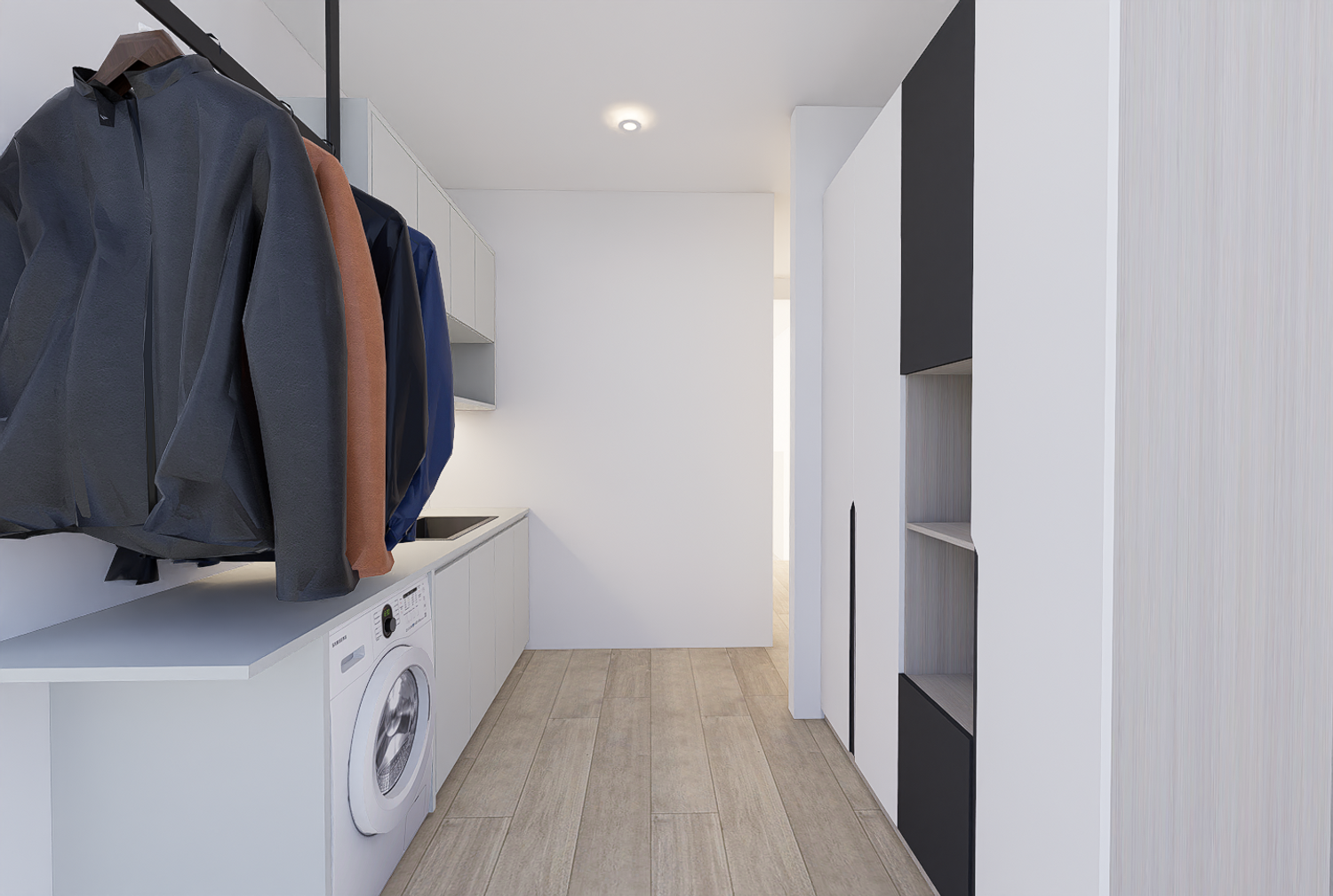 Per la camera da letto, ho seguito le vostre richieste collocandola al piano superiore. È possibile che alcune porte e finestre debbano essere ricollocate per adattarsi al nuovo layout. Ho inoltre ottimizzato gli spazi del secondo piano per ricavare la zona notte e l’area lavanderia.