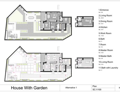 We imagine the master bedroom as an intimate and warm place, an environment that favors rest and relaxation tranquility and that it is sheltered from the rest of the house, without losing consistency. For the other rooms we have no particular needs or requirements.