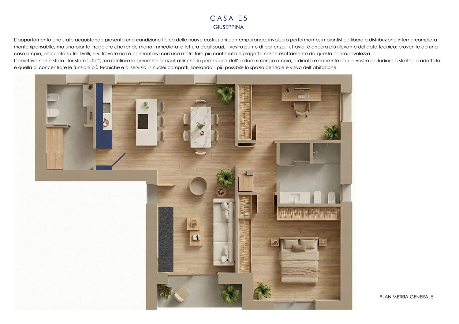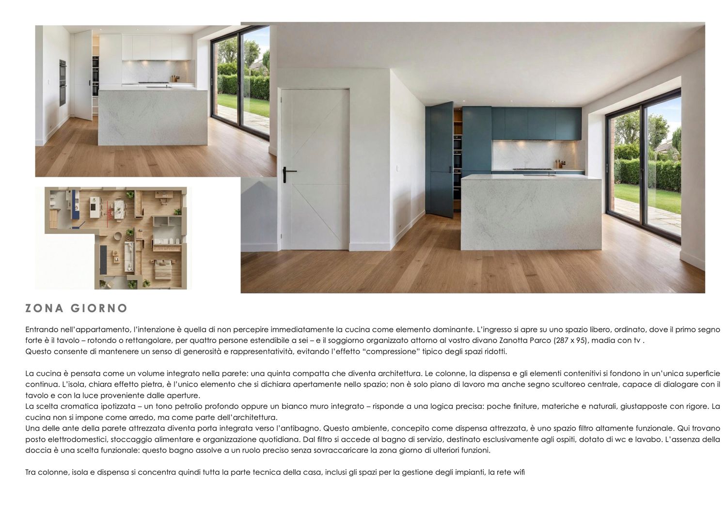 il focus, spiegato meglio in relazione, è darVi uno spazio contemporaneo, e ottimizzare tutte le zone suddividendo zona giorno, zona cucina e zona notte, elemento fondamentale è aprire la porta d'entrata e avere un grandissimo soggiorno sempre ordinato e curato.