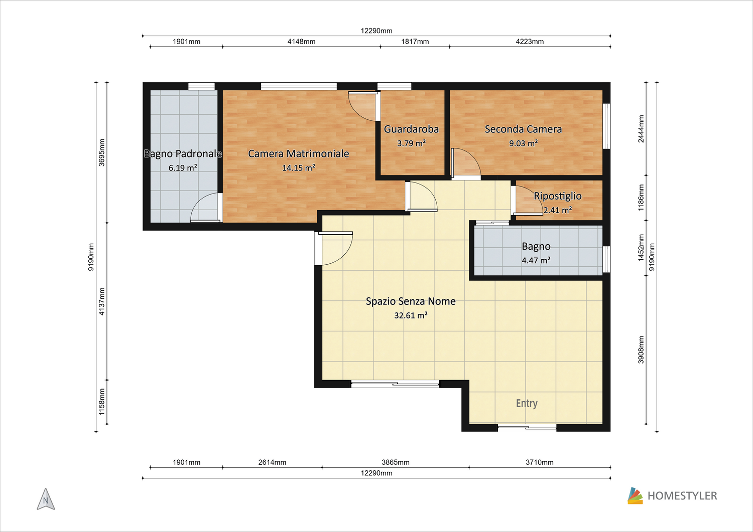 L’intervento progettuale ha previsto la ridistribuzione completa degli spazi interni, mantenendo invariato il perimetro dell’appartamento e lavorando esclusivamente sulla nuova configurazione dei tramezzi.