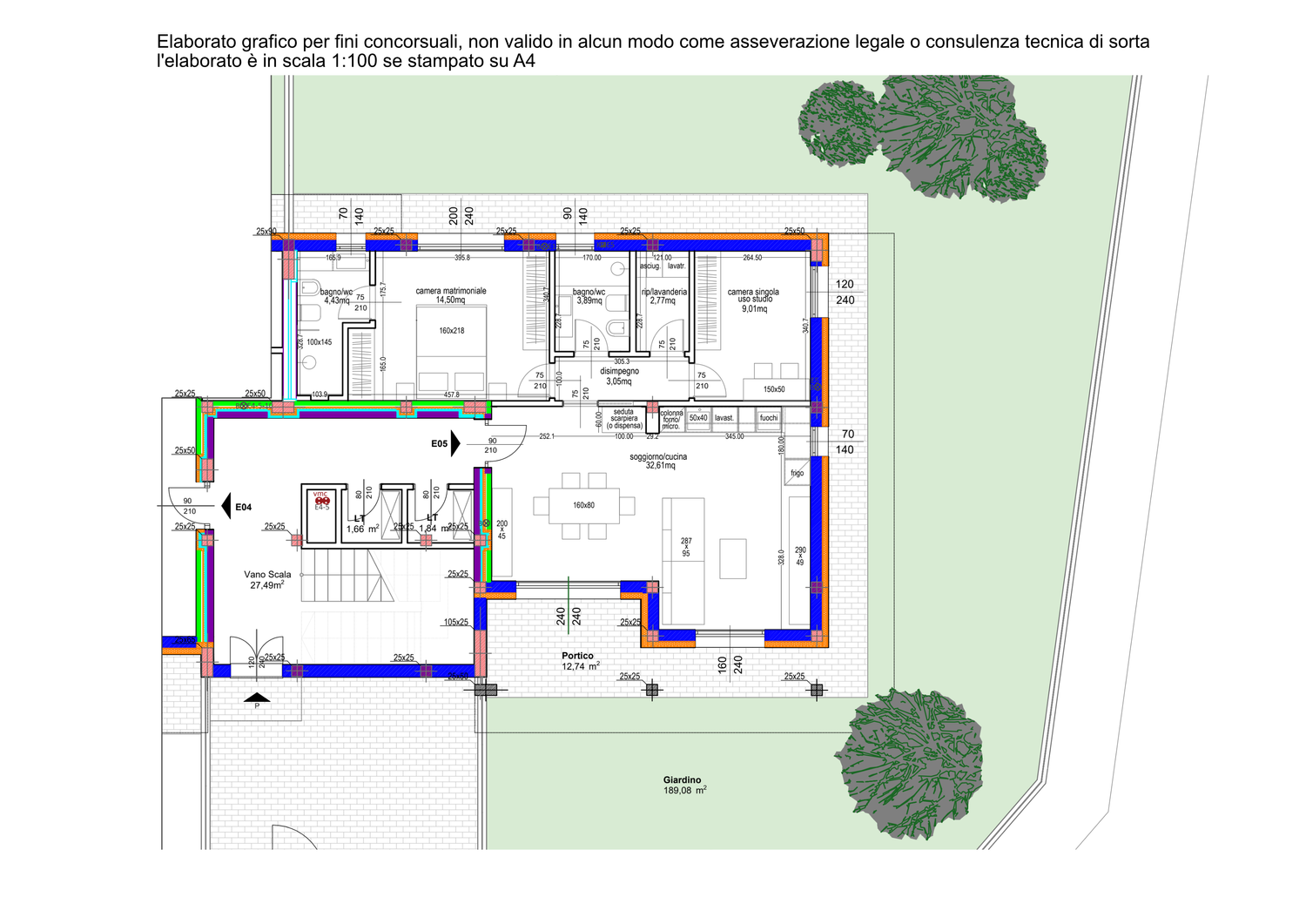 Aggiungo una planimetria colorata per dare un'idea visiva immediata. Per le quote e le dimensioni fate riferimento al disegno tecnico.