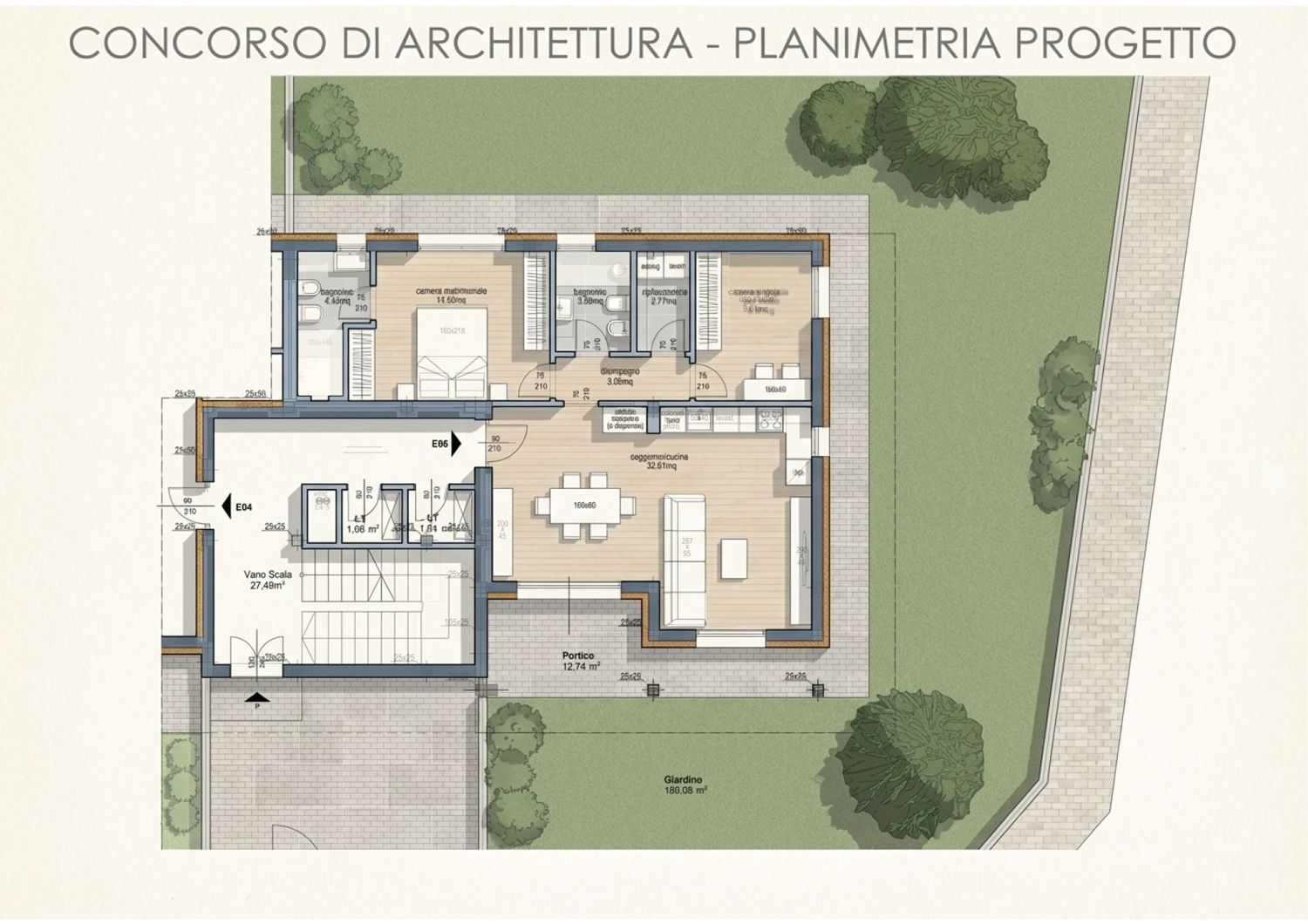 In ingresso ho lasciato uno spazio per un mobile contenitivo, può essere qualsiasi cosa, io ci vedrei uno di quei mobili in cui ci si può sedere per mettersi le scarpe, ma non è vincolante.