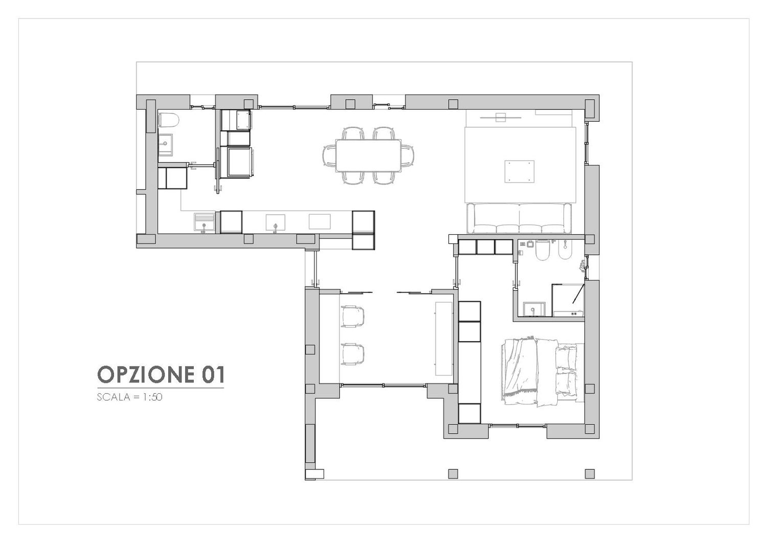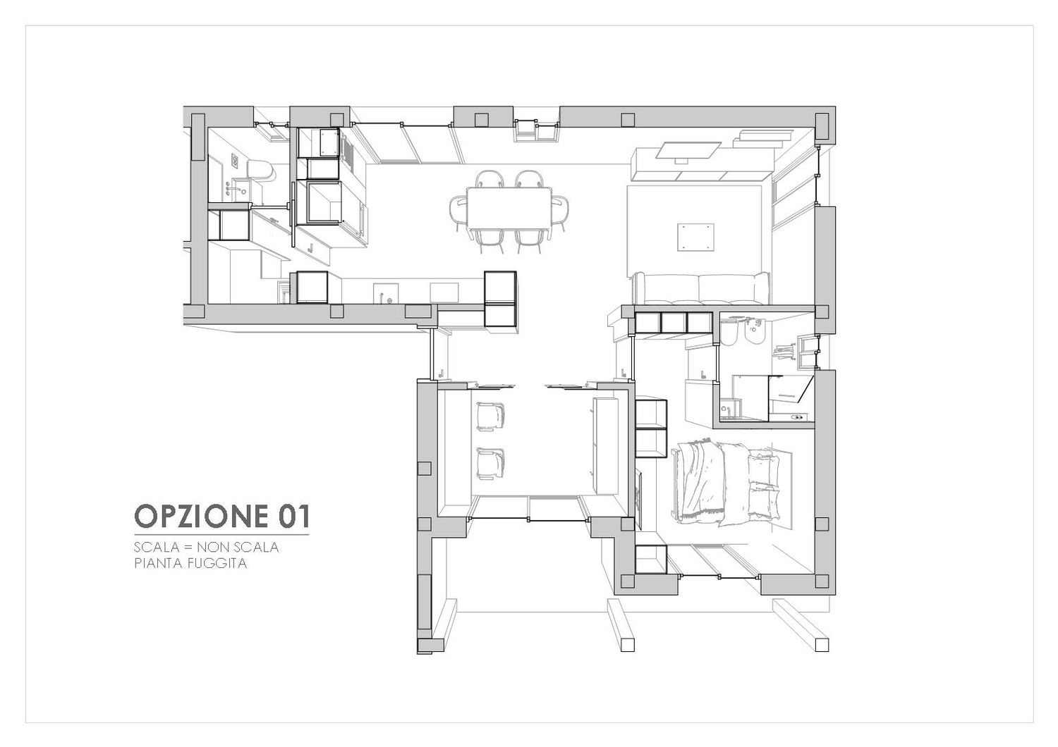 Questo appartamento si distingue per il suo migliore utilizzo dello spazio, dove gli elementi sono distribuiti in modo efficiente per ottenere una maggiore spaziosità, far sì che l'appartamento sembri più grande e abbia un migliore rapporto con l'esterno.