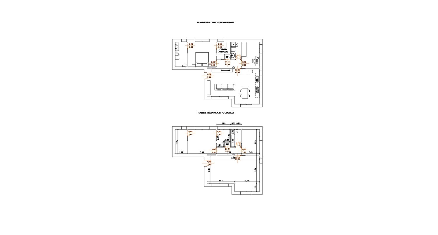 Nel corso della nuova progettazione, è stato inoltre previsto lo spostamento del portone d'ingresso di 40 cm , per ottimizzare l'accesso e migliorare la distribuzione interna.
