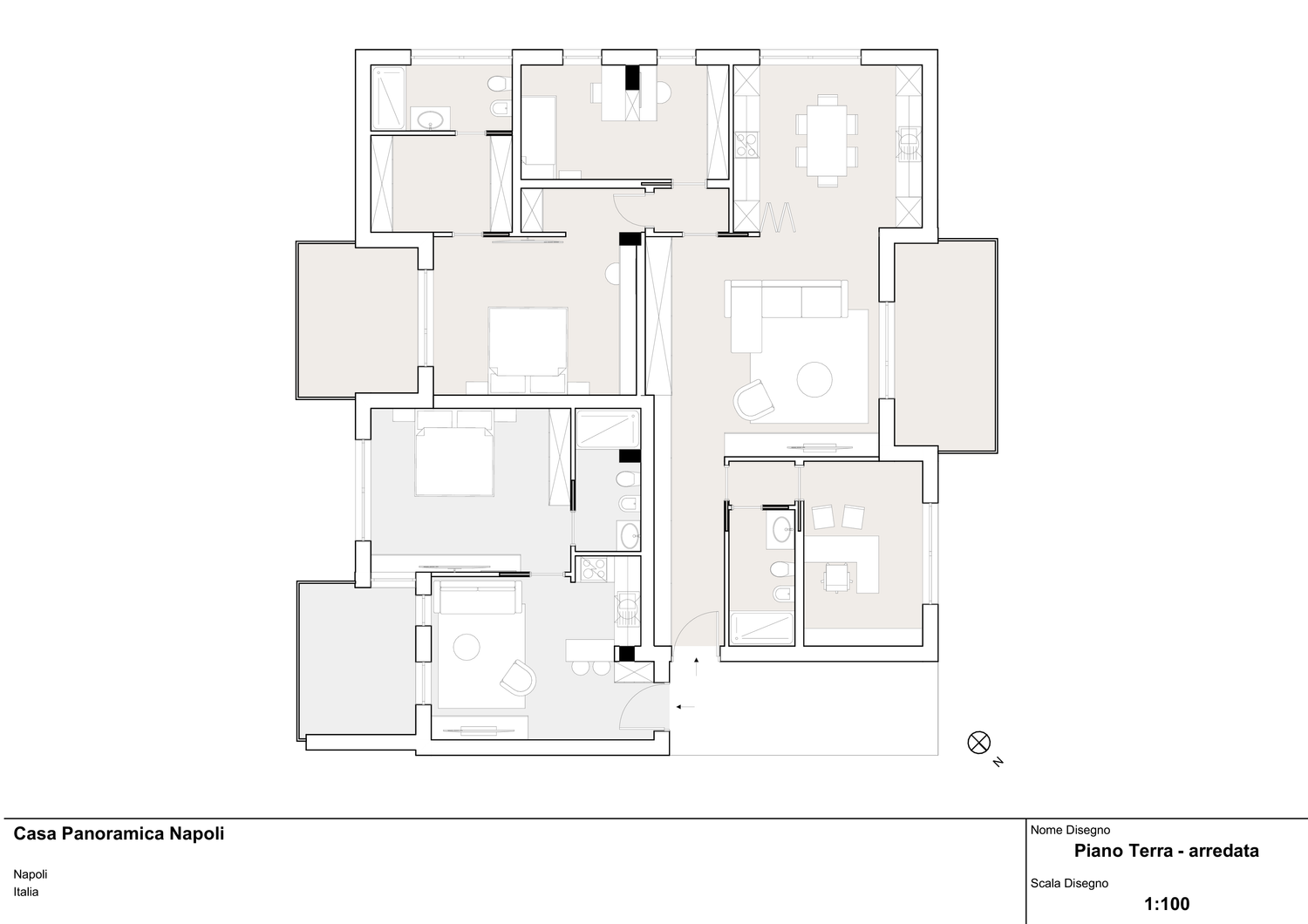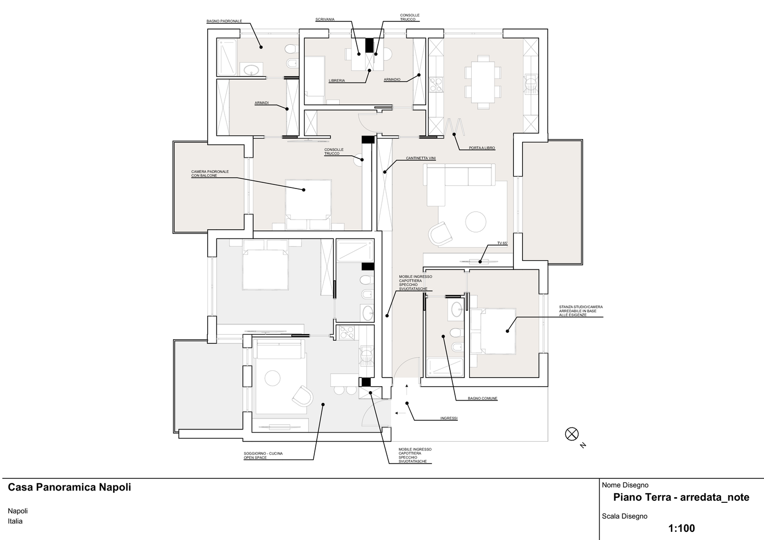 Il progetto prevede, come da richiesta, la suddivisione di un appartamento di 188 mq, in due unità indipendenti: appartamento 1 adibito ad abitazione principale e appartamento 2 destinato ad affitto a breve o lungo termine.