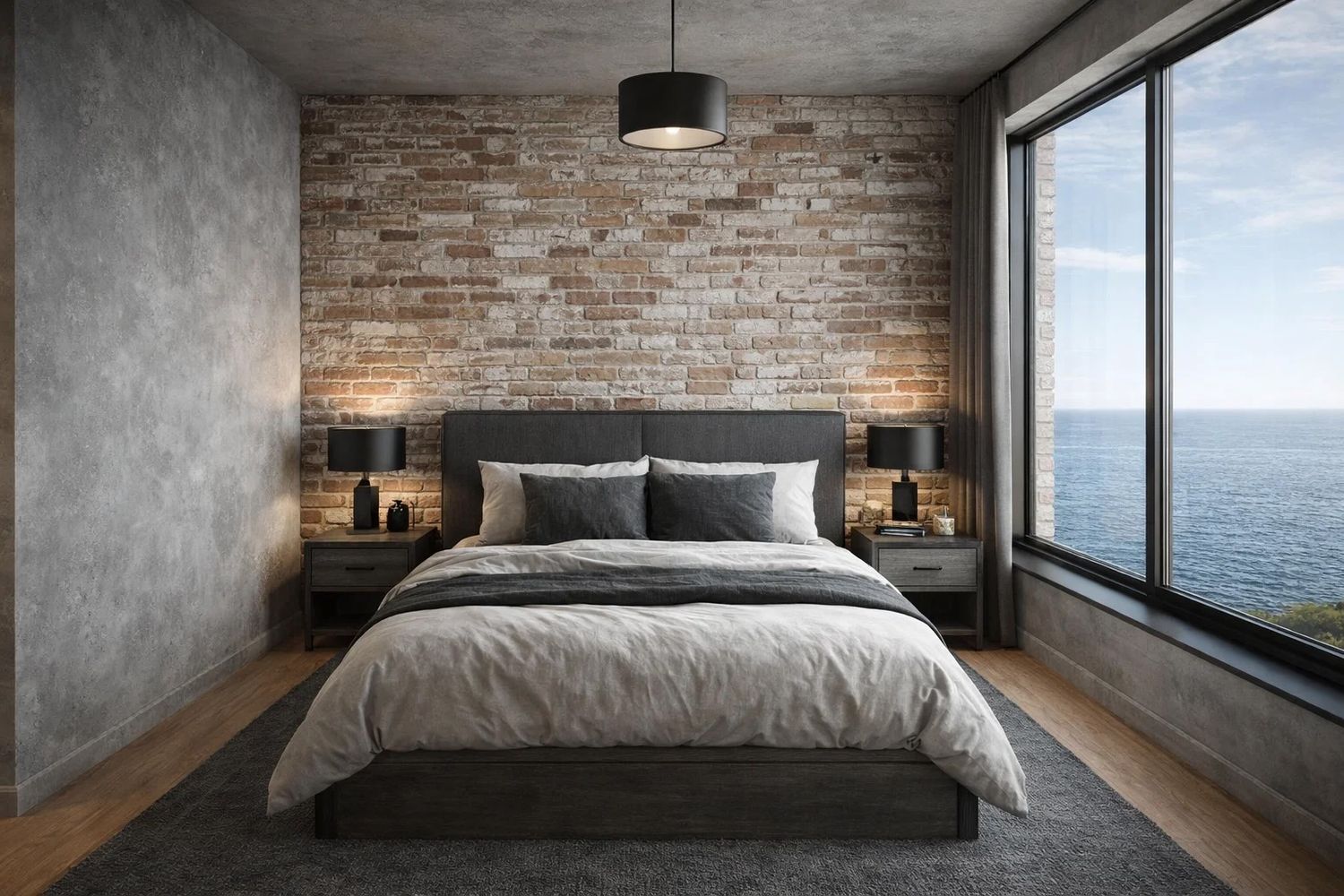 The second unit is designed as a compact, efficient apartment with a bedroom opening onto the balcony, an external bathroom, and an integrated living space with an open kitchen. A multifunctional kitchen island serves as both a preparation surface and dining area, optimizing space and functionality.