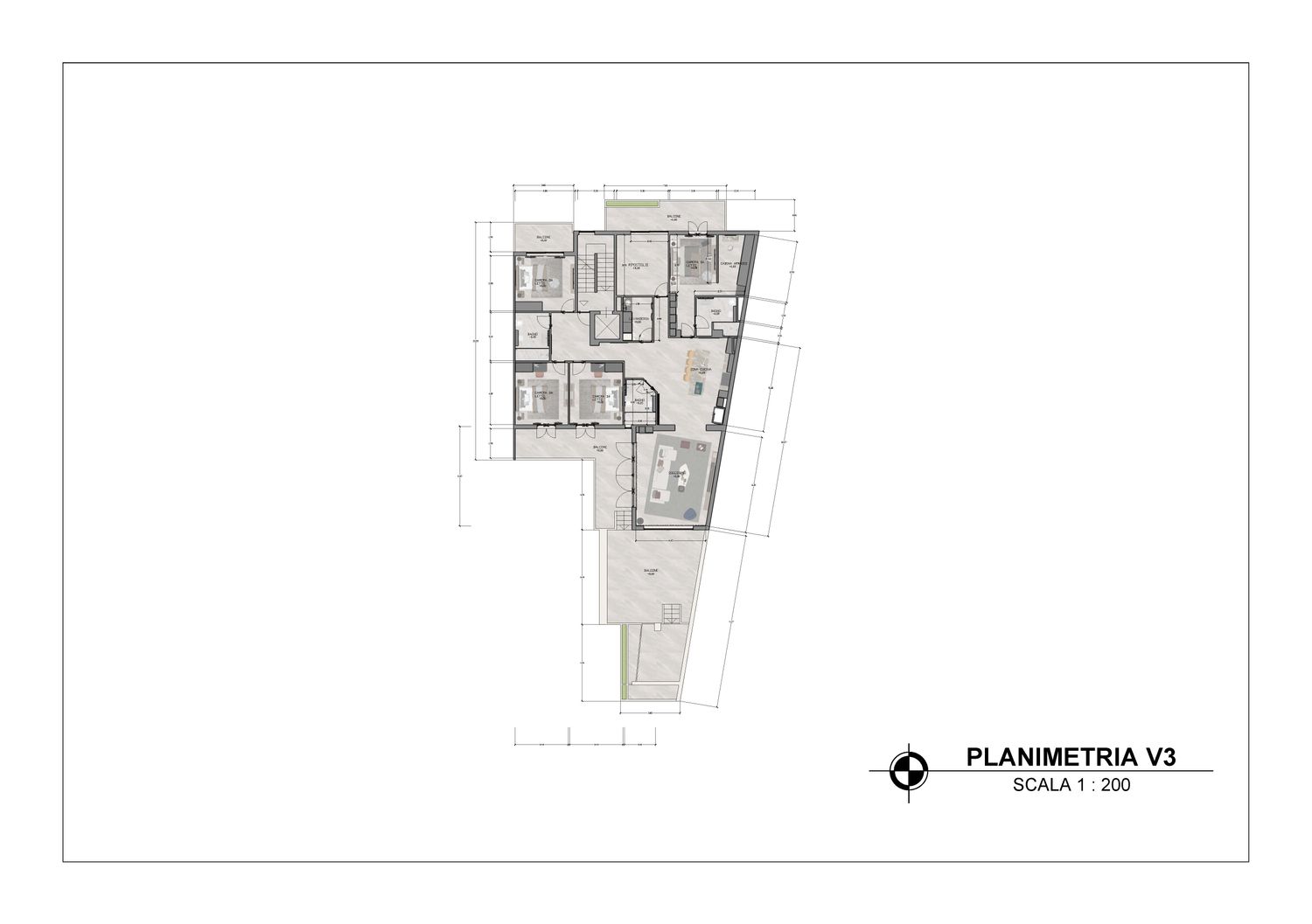 Tutte le tre proposte progettuali presentate sono state attentamente valutate in base alle planimetrie disponibili, inclusi gli impianti idraulici, la struttura (Planimetria V3) e la disposizione dei bagni con finestre. L'attenzione principale è rimasta quella di ridurre al minimo la ristrutturazione complessiva delle pareti e di preservare l'integrità strutturale dell'edificio.