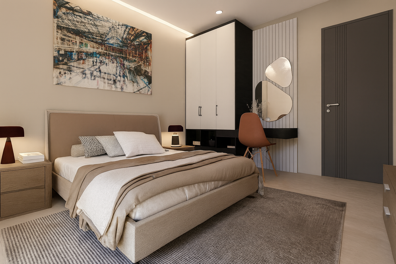 - L'ampio balcone si collega direttamente al soggiorno e alla zona pranzo → uno stile di vita che valorizza l'accesso allo spazio esterno.