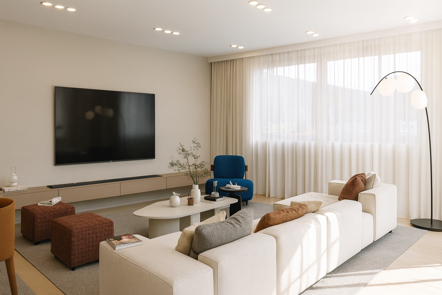- La zona giorno è abbastanza spaziosa con un chiaro orientamento verso il balcone.