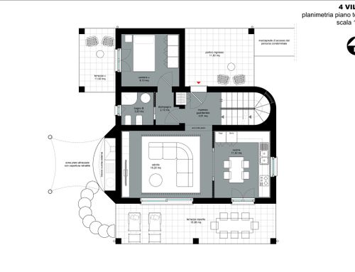 La casa dovrà essere di tre piani (uno interrato), il piano terra con cucina, soggiorno, bagno e una camera, da realizzare anche un porticato, al piano primo due camere e un bagno.