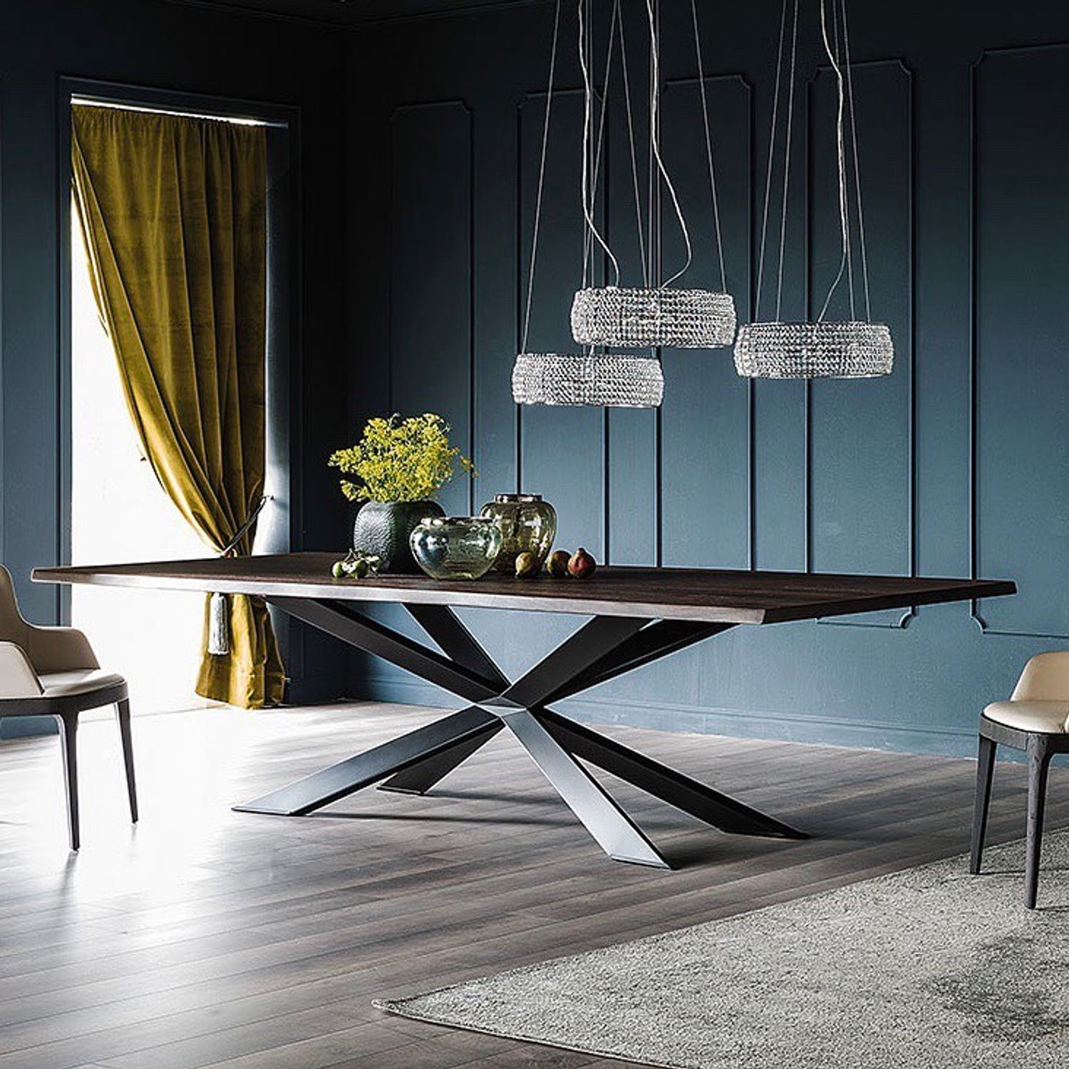 La mesa del comedor debe ser preferiblemente de madera con patas de metal oscuro. Me gustan algunos toques de madera, pero no quisiera que todo el mobiliario fuera de madera.