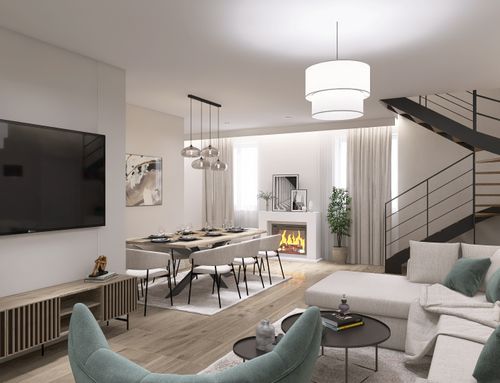 An apartment of approximately 130 m² resulting from a demolition and identical reconstruction project of a small late-18th-century building. The property will consist of two apartments connected by an internal staircase and a small tower accessible from the second floor. We are interested in the apartment on the first floor.