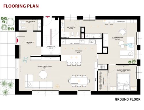 We have 2 kids (now 3 and 5), both are thrilled to have their own room. Moreover we would love to use the post-pandemic flexibility which allows us to work from home. For family and friends we are looking for a guest area which is as independent as possible, ideally with its own bathroom. Last but not least, we dream of having a wellness area with a couple of cardio machines (rower, stationary bike), an area for free body workout as well as a sauna.