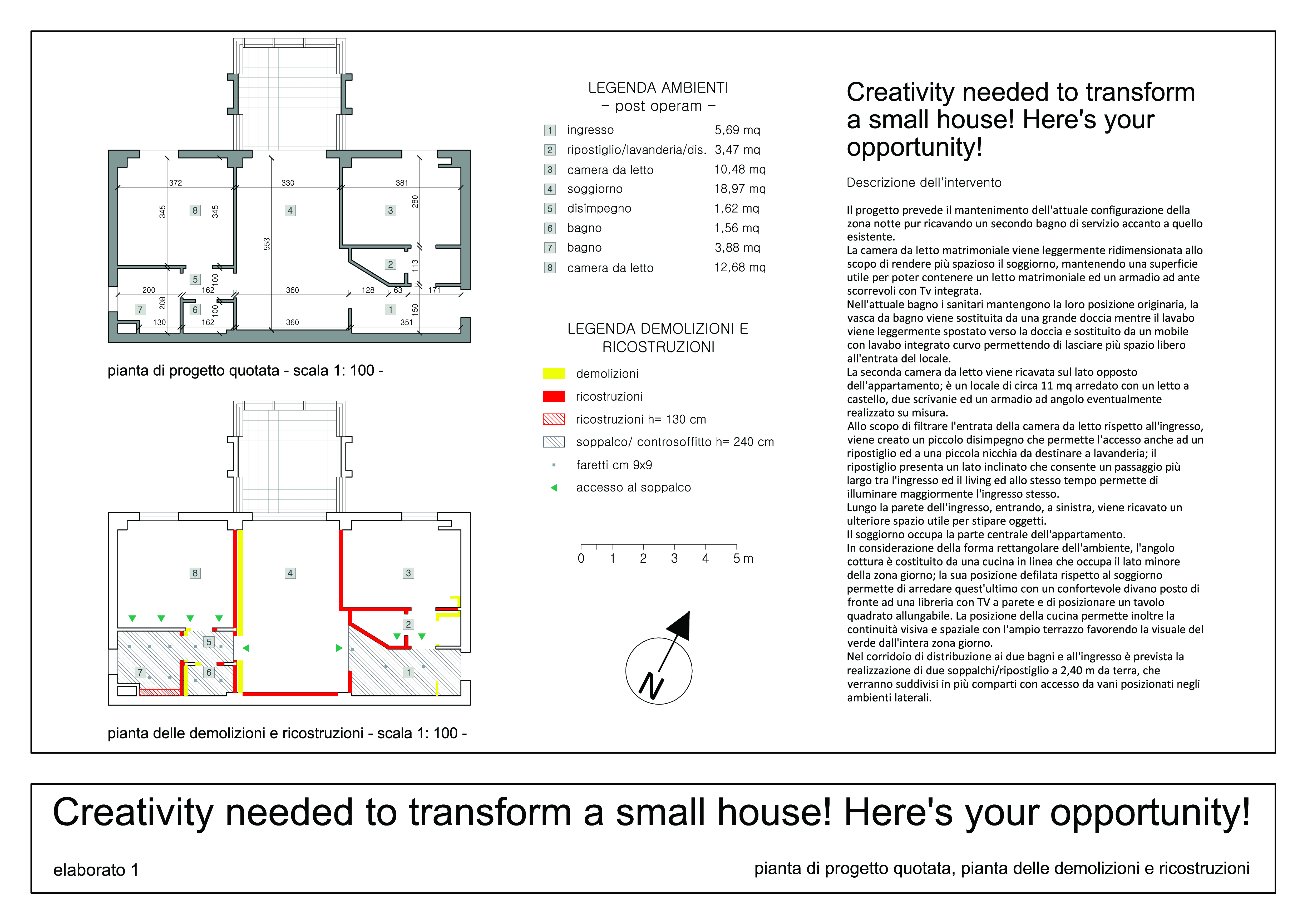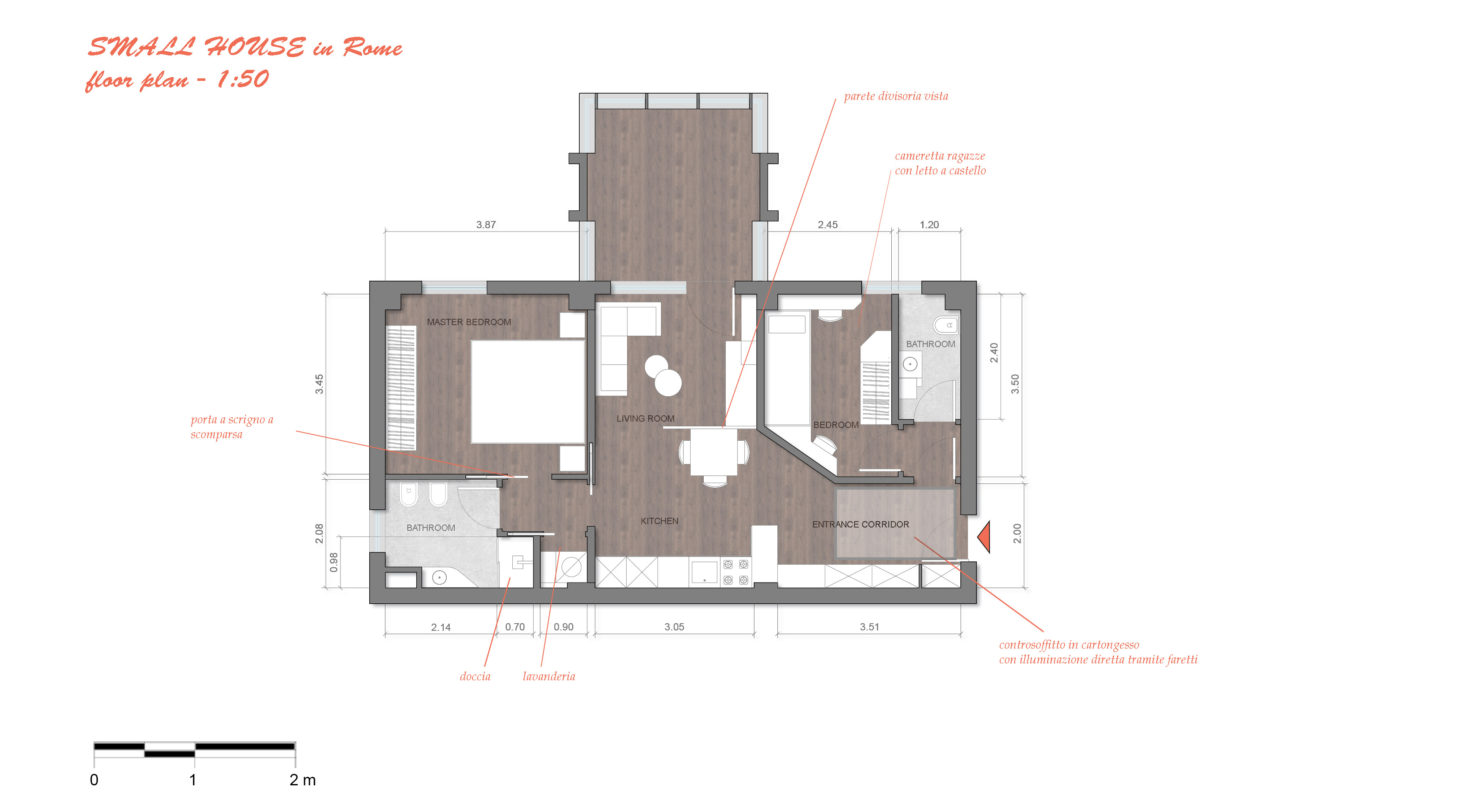 - 1 camera matrimoniale anche non molto grande ma che sia in grado contenere un armadio anche solo 4 ante e lo spazio per un TV LCD
