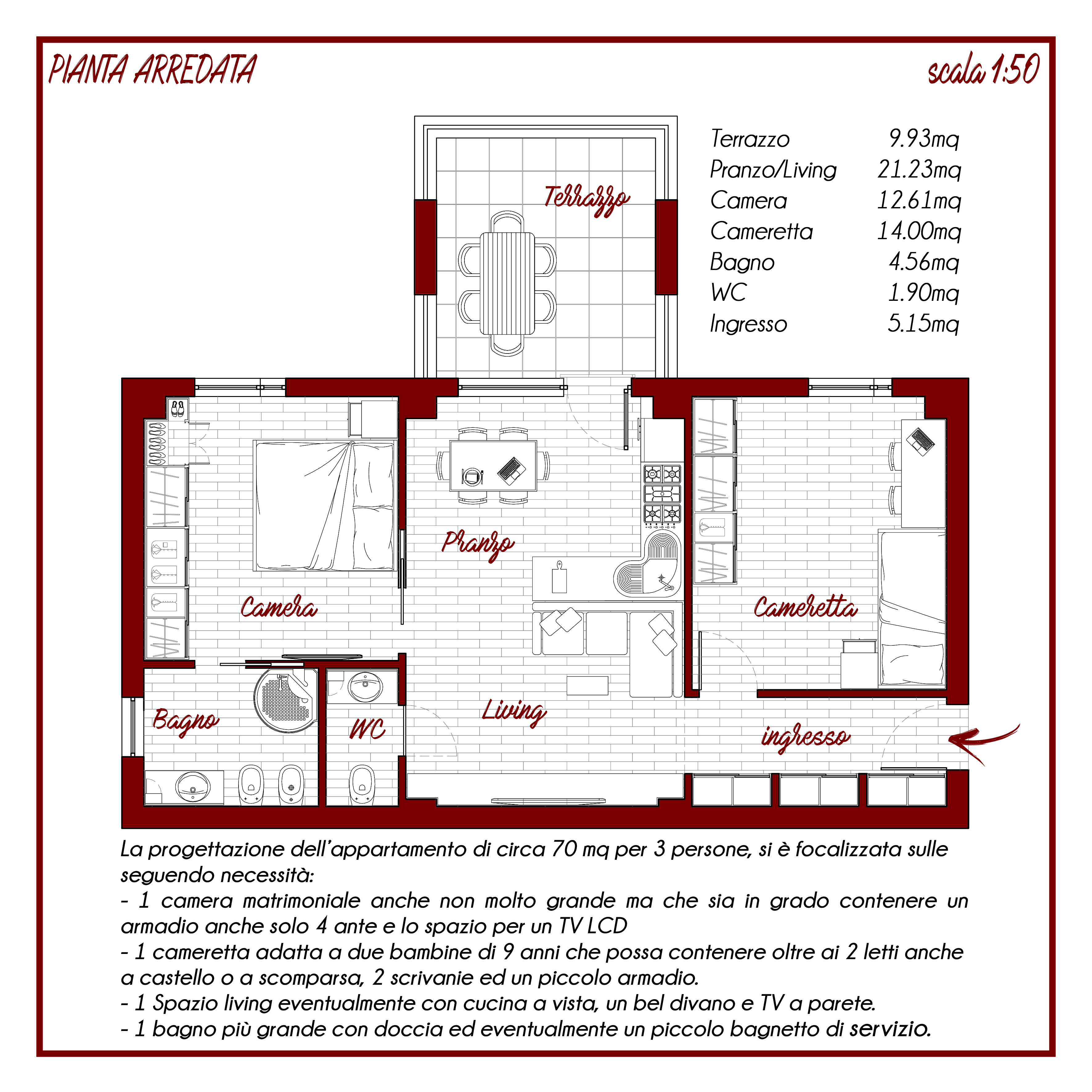 Devo ristrutturare completamente un appartamento di circa 70Mq. Andremo a viverci in 3, io e ele mie due bambine di 9 anni.