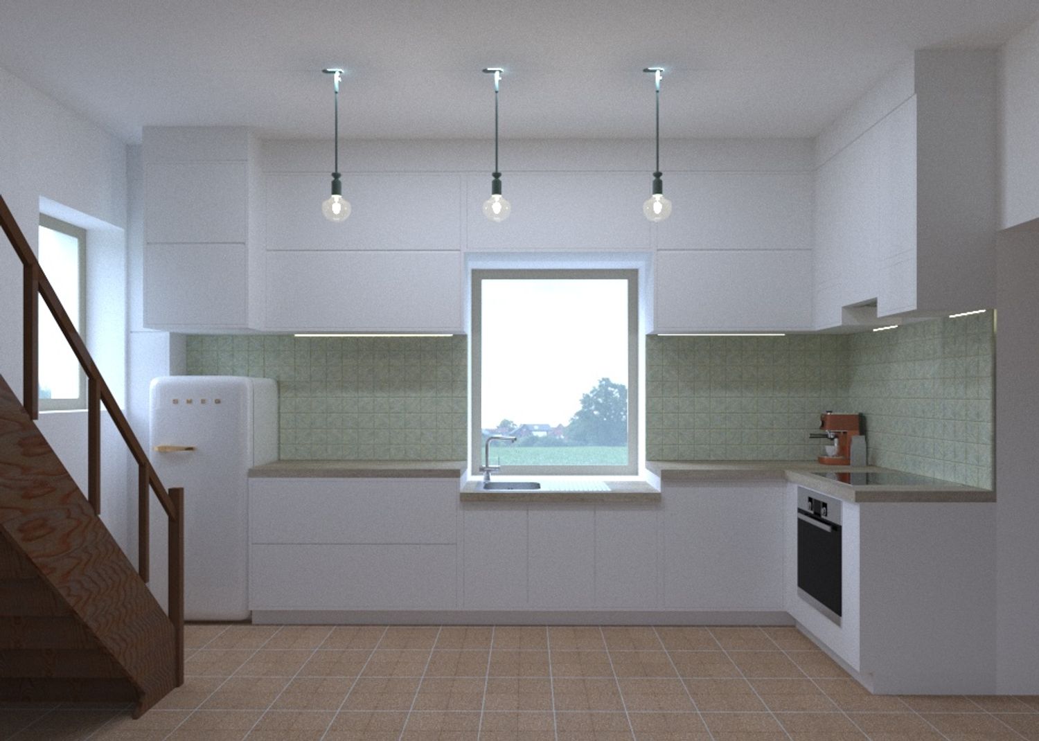 The kitchen was designed according to your needs. The sink with a drainer is under the window, but at a height where the window can be opened.