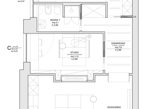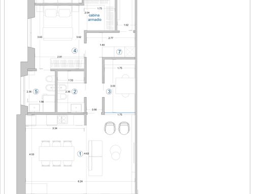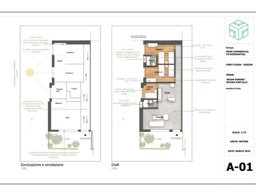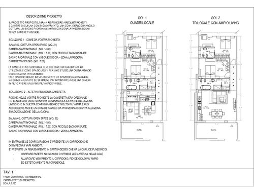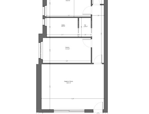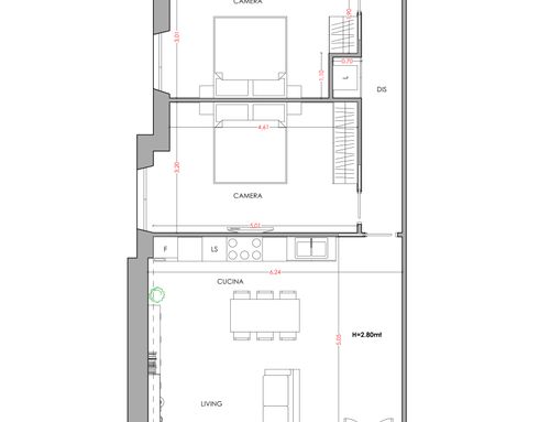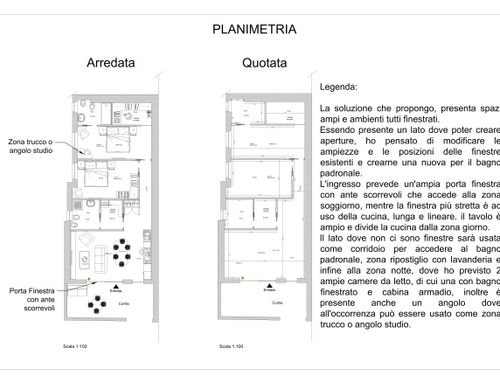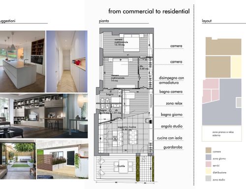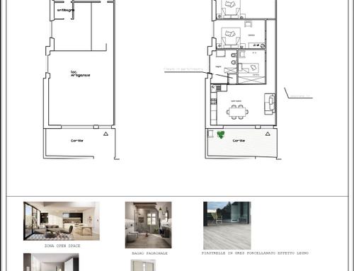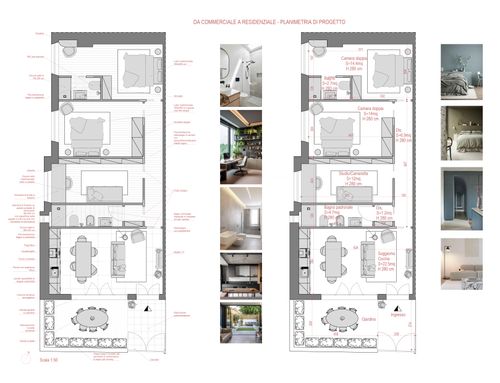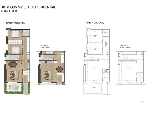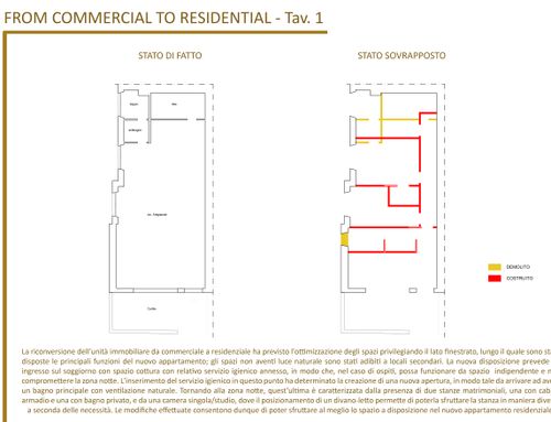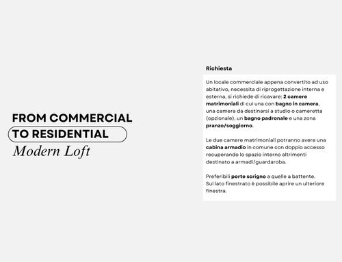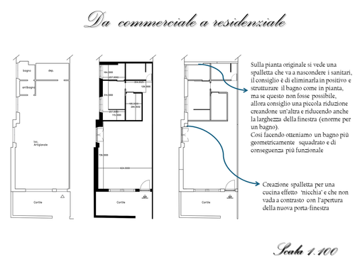 Un locale commerciale appena convertito ad uso abitativo, necessita di riprogettazione interna e esterna, si richiede di ricavare: 2 camere matrimoniali di cui una con bagno in camera, una camera da destinarsi a studio o cameretta (opzionale), un bagno padronale e una zona pranzo/soggiorno.