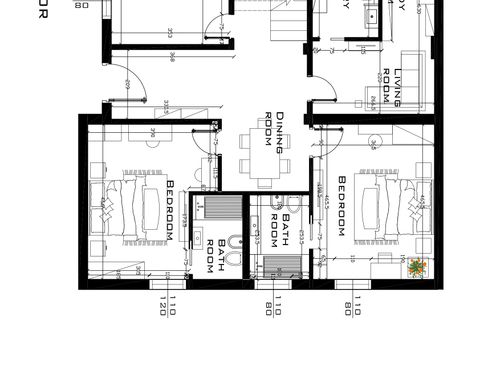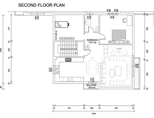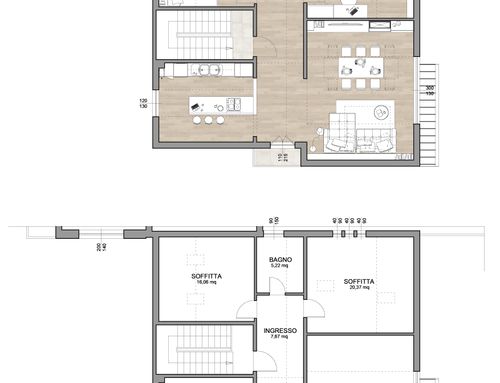 On the ground floor we want to create a B & B so furnish the two bedrooms with bathroom that are on the right. On the left there is the study and the laundry room. Now it is a warehouse and soon the company will carry out the intervention creating the B & B (or apartment) The laundry room will also have a toilet and shower and a technical room.