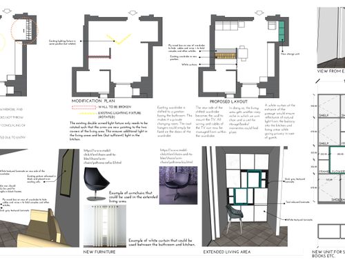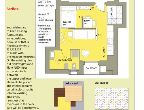 If possible I would like to keep all my furniture (kitchen, sofa bed, table, chairs, wardrobe) but I'm open to variations and creative suggestions !