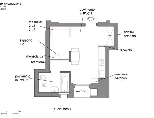 Se possibile vorrei mantenere tutti gli altri mobili già presenti (cucina, divano-letto, tavolo, sedie, armadio) ma sono aperto a variazioni e suggerimenti creativi !
