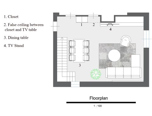 el concurso se refiere a la sala de estar de un apartamento distribuido en 2 plantas donde vive una familia de 4 personas, incluidas 2 niñas: