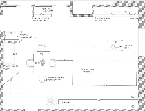 Not knowing how to define the style of furniture that we like, we leave a wide margin of discretion to the professional in the choice of the same considering that we like the idea of mixing the modern classic with the contemporary, metropolitan, etc ... and we don't like them instead the shabby, the Provencal, the country, the ethnic or the classic ... in short, we like clean lines.
