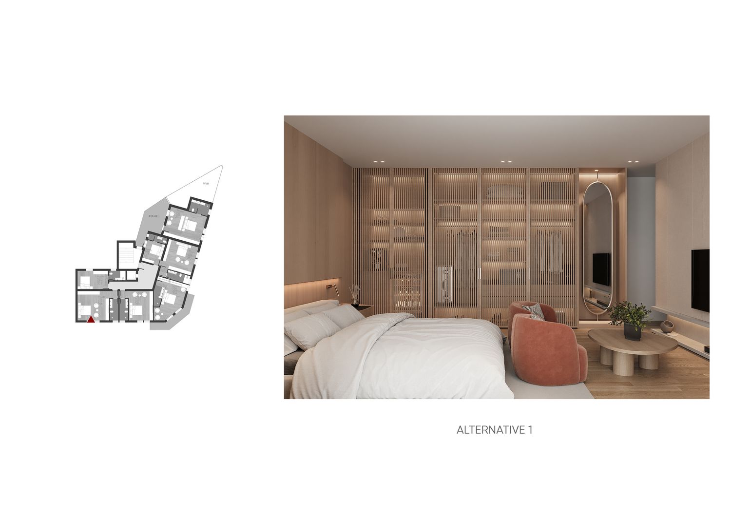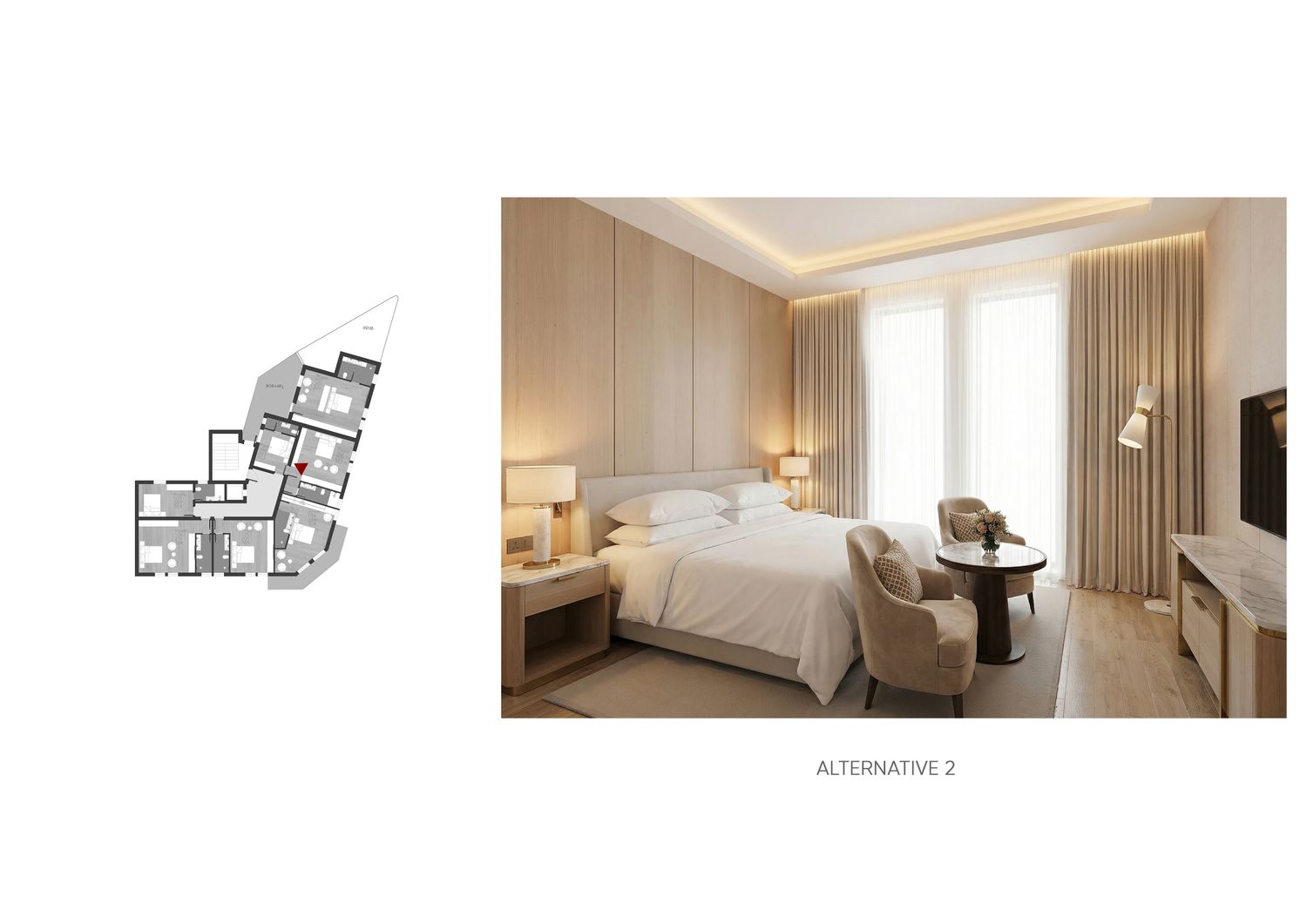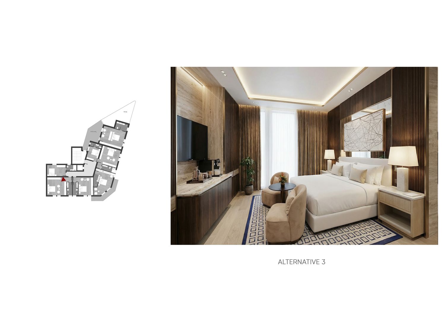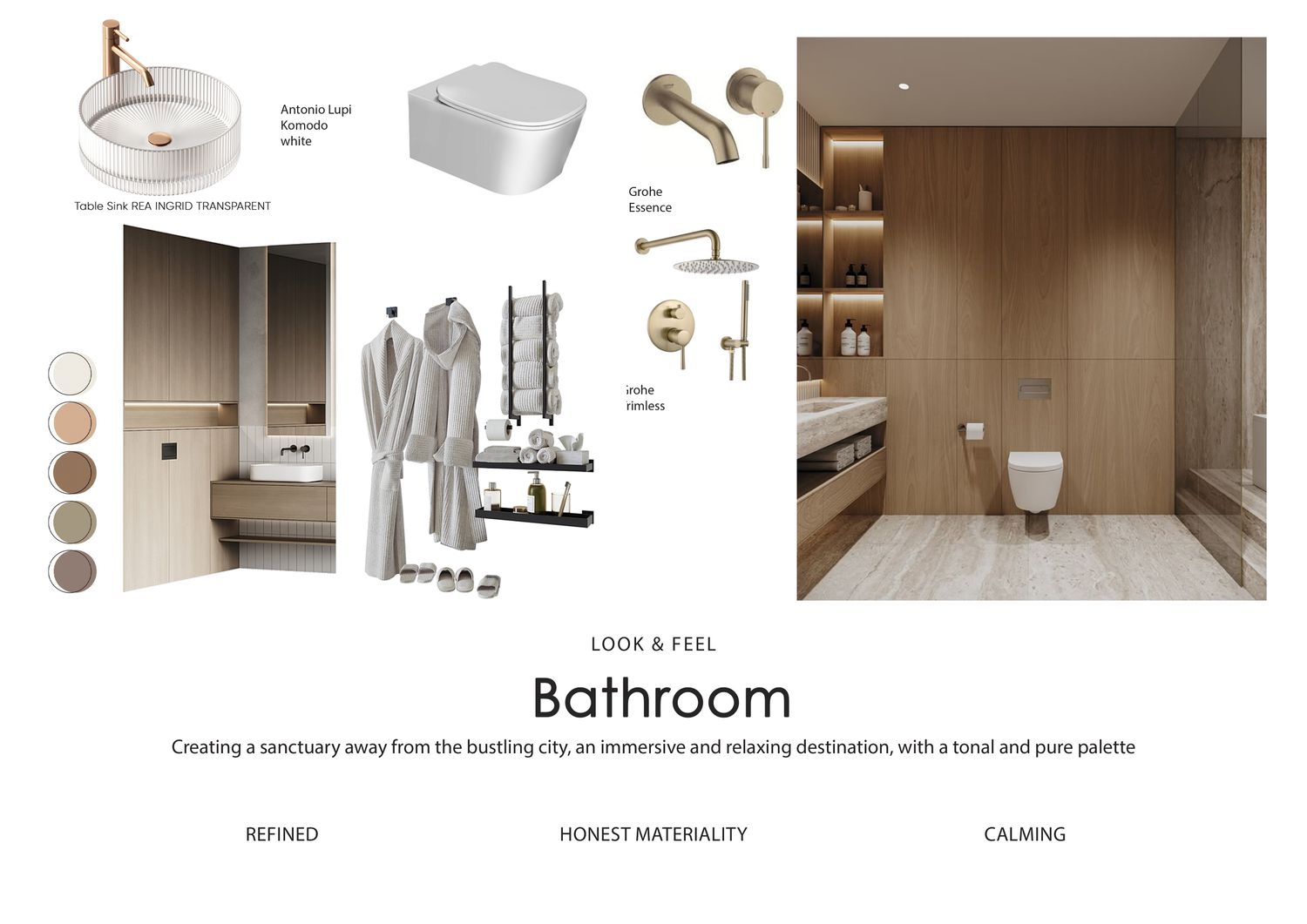 In questa proposta progettuale sono stati scelti toni caldi per creare un’atmosfera accogliente e confortevole, in modo che l’ospite possa sentirsi rilassato e vivere una sensazione di casa.