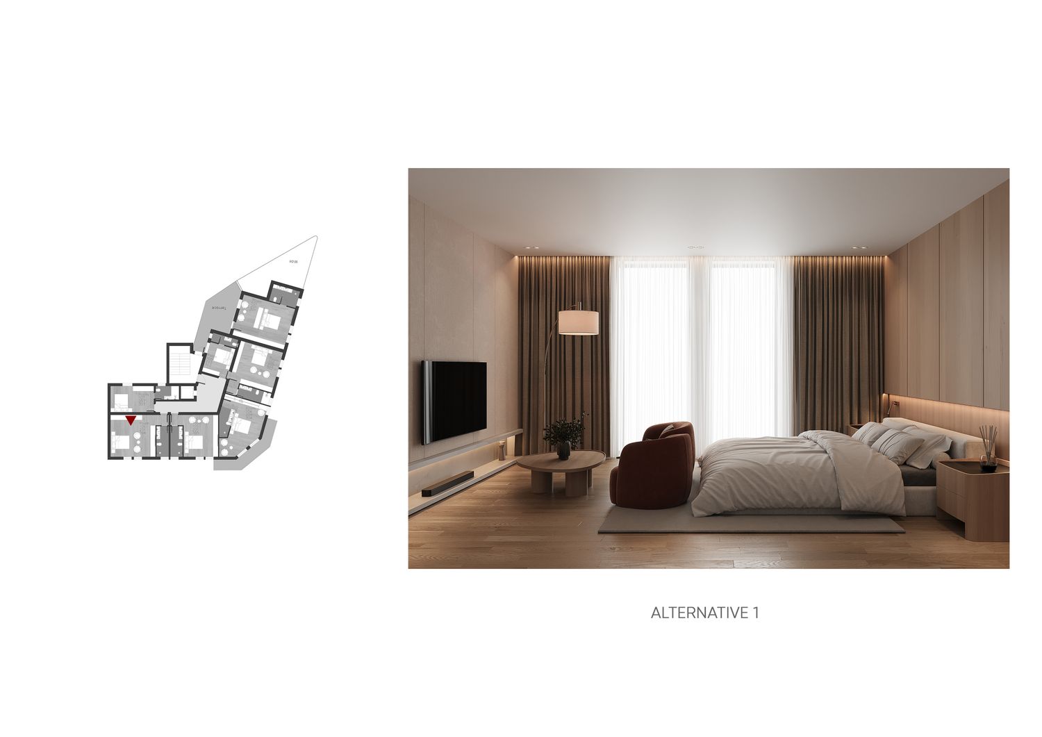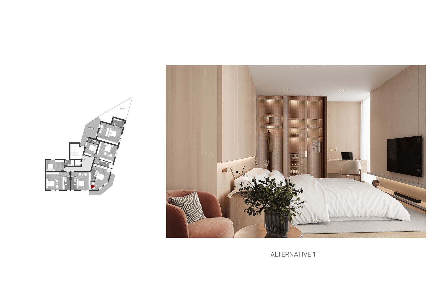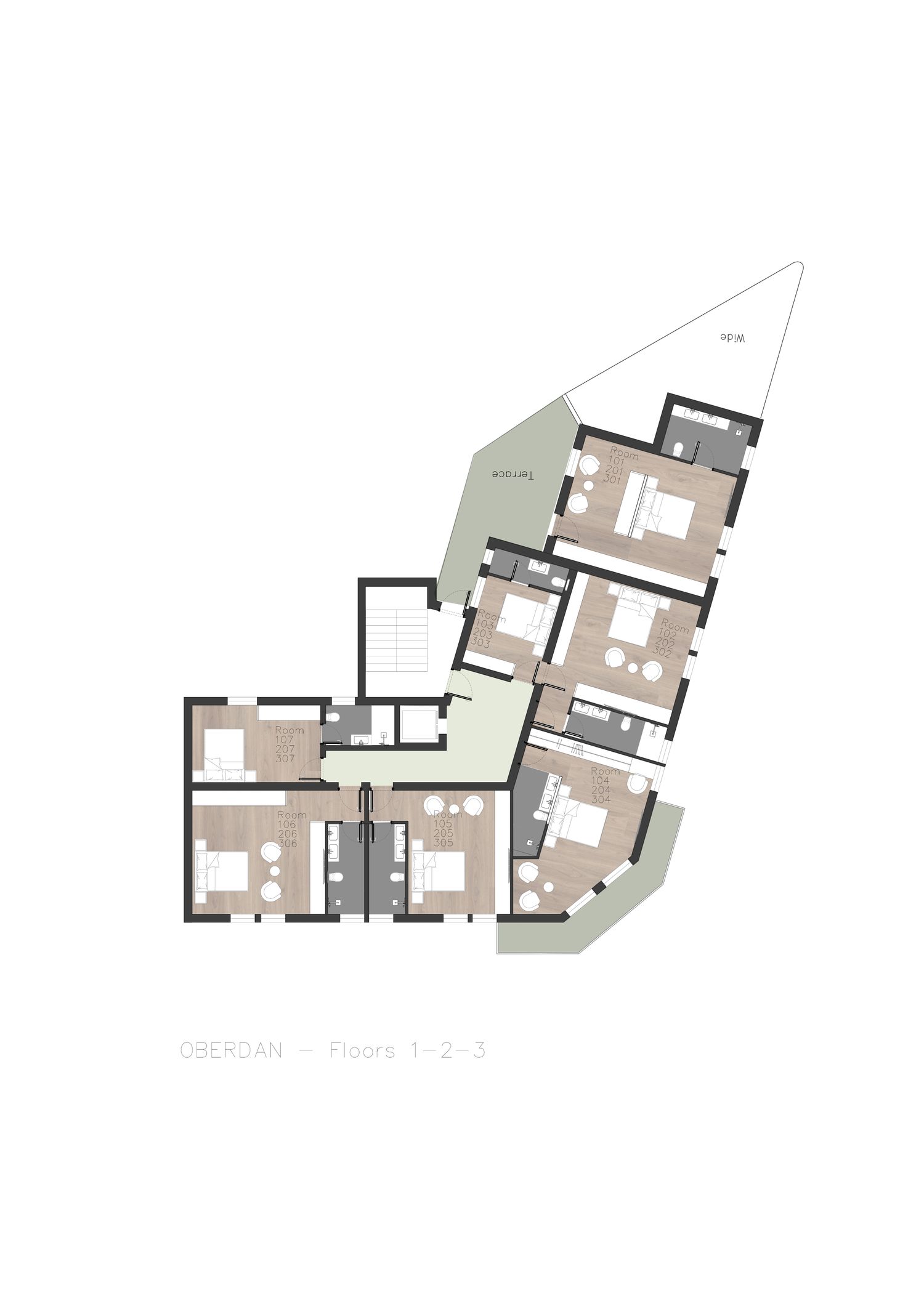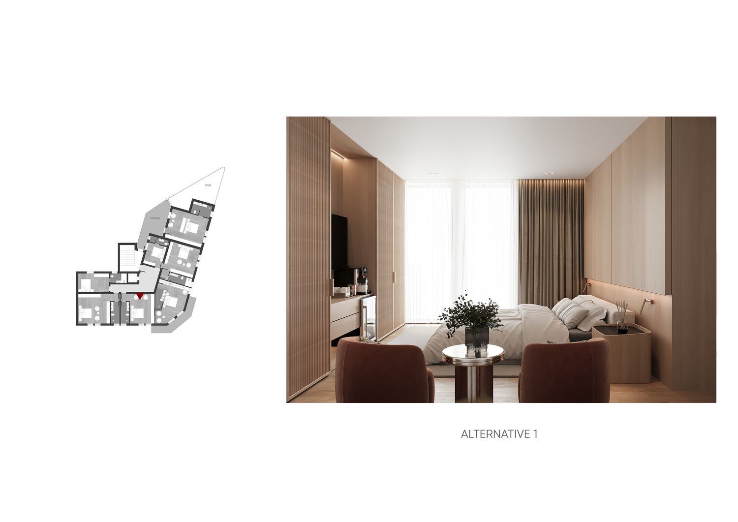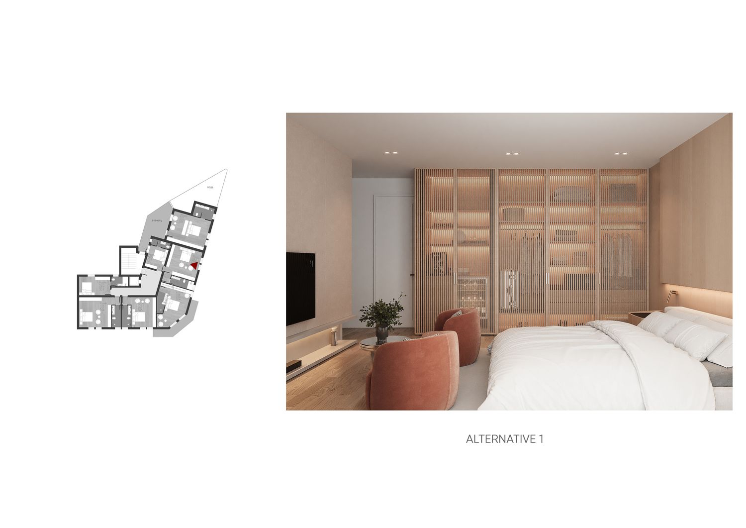 In questa proposta progettuale sono stati scelti toni caldi per creare un’atmosfera accogliente e confortevole, in modo che l’ospite possa sentirsi rilassato e vivere una sensazione di casa.