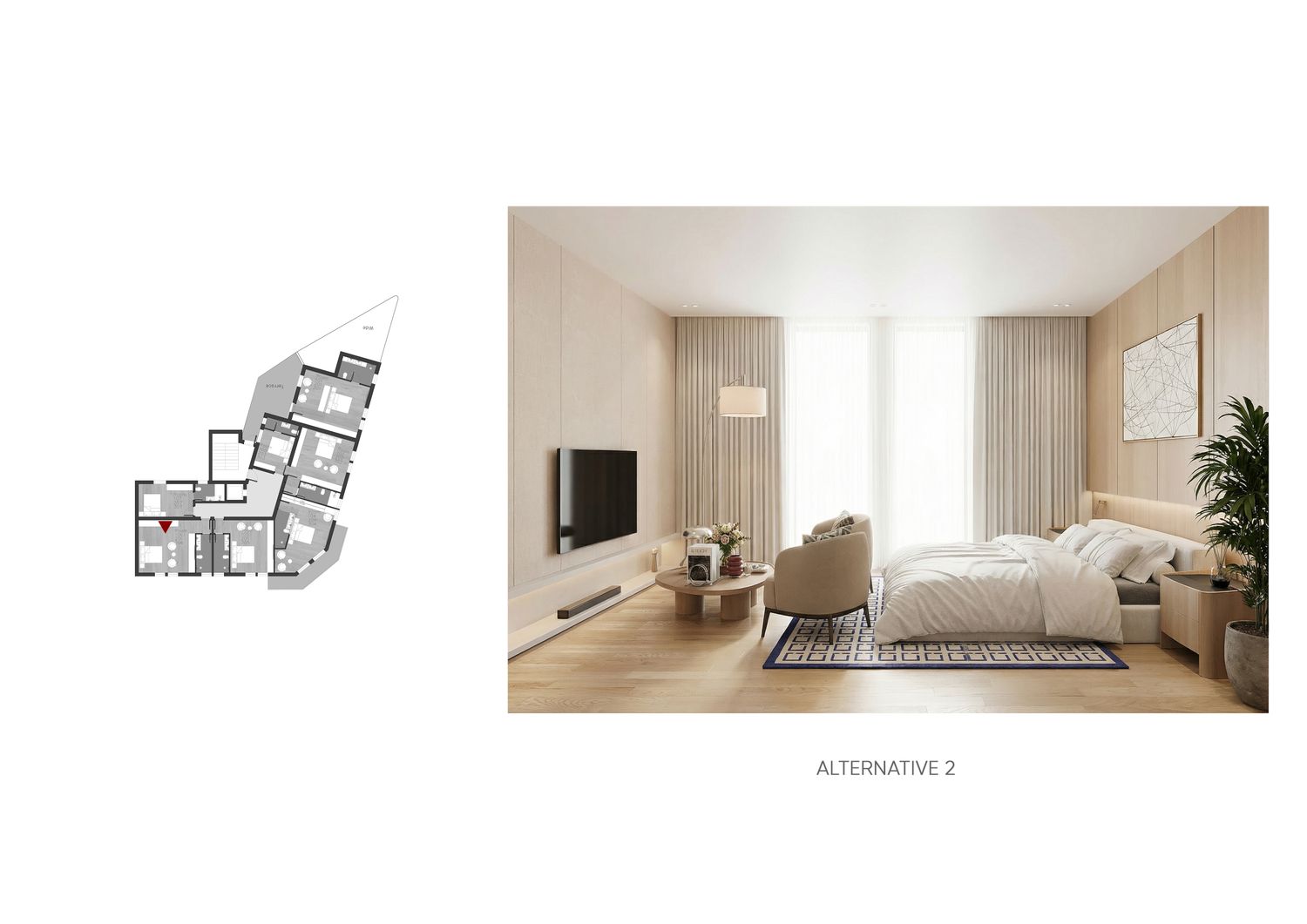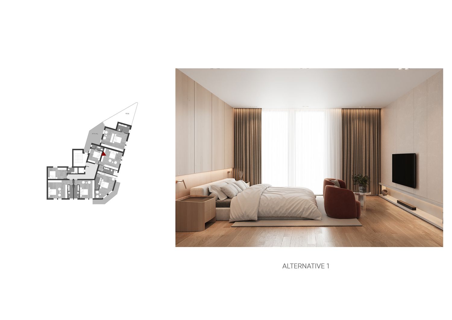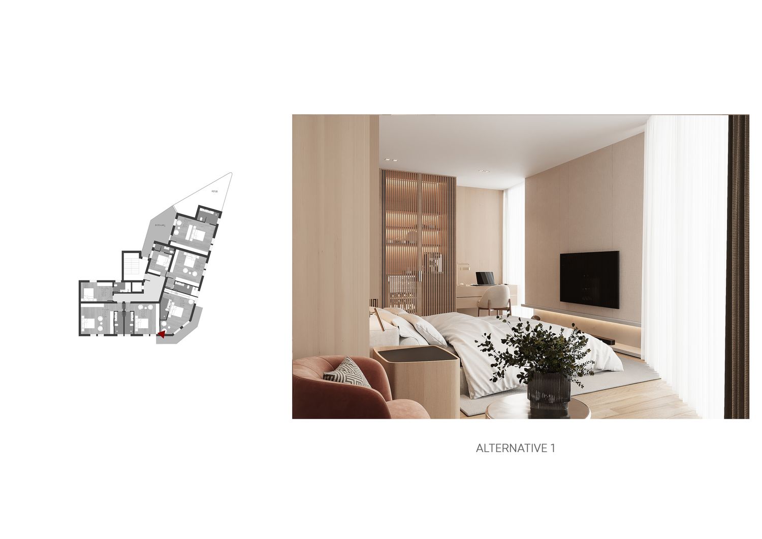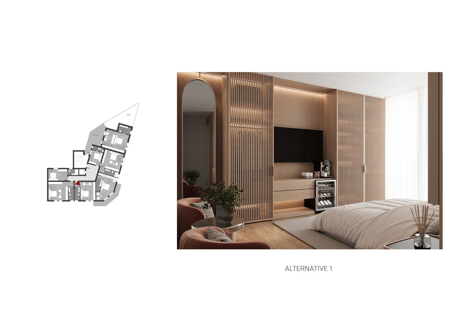 In questa proposta progettuale sono stati scelti toni caldi per creare un’atmosfera accogliente e confortevole, in modo che l’ospite possa sentirsi rilassato e vivere una sensazione di casa.