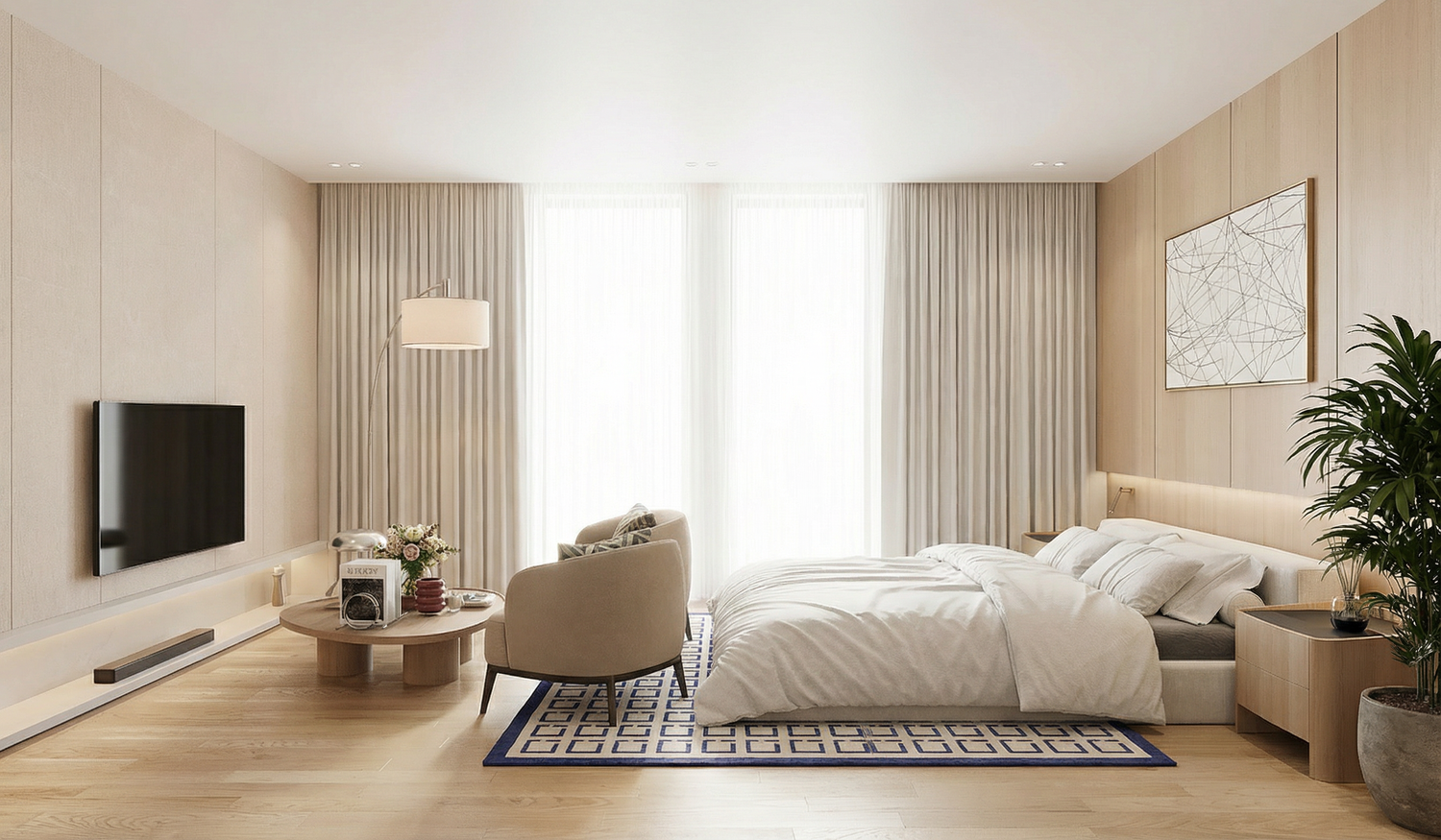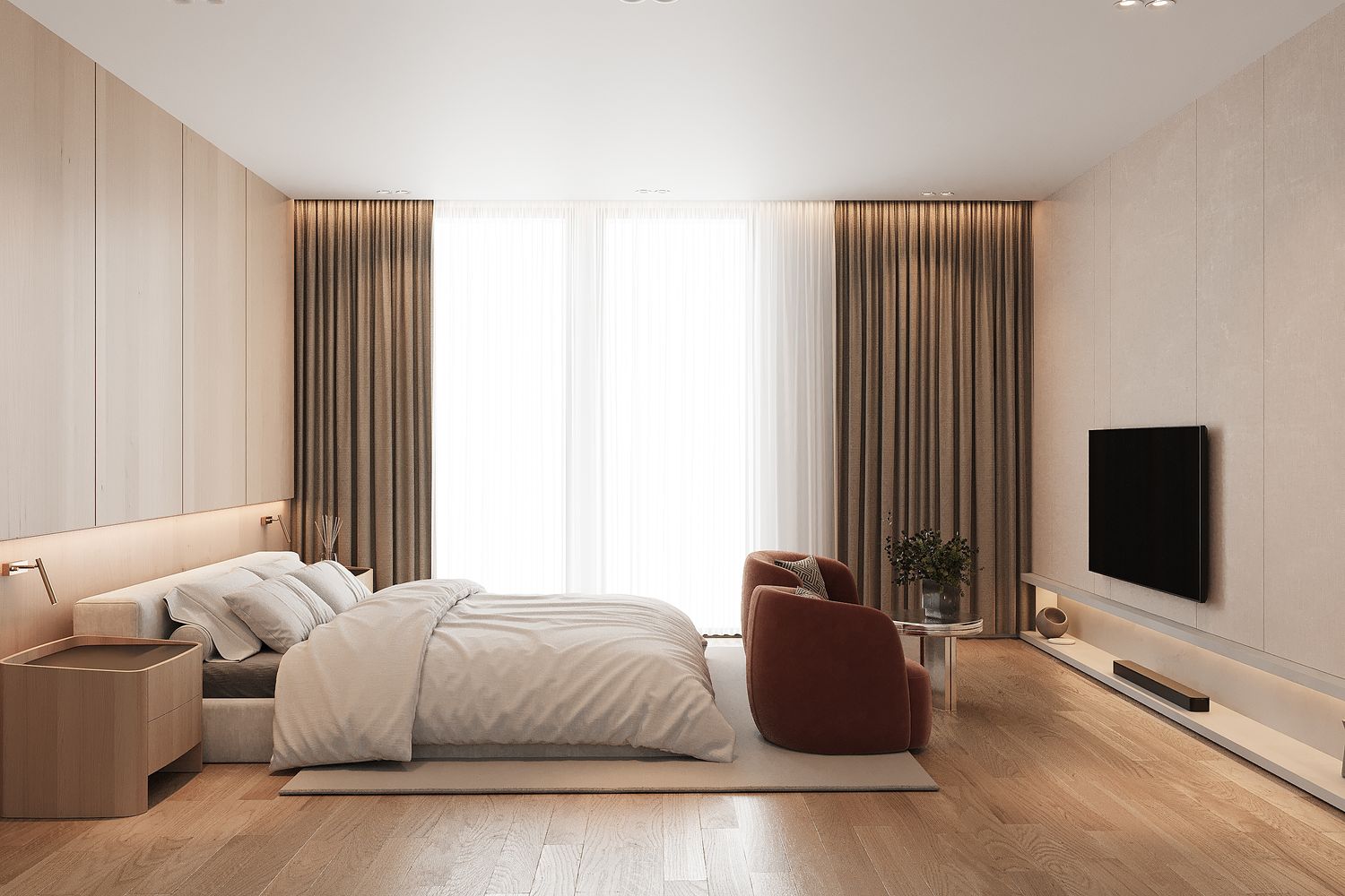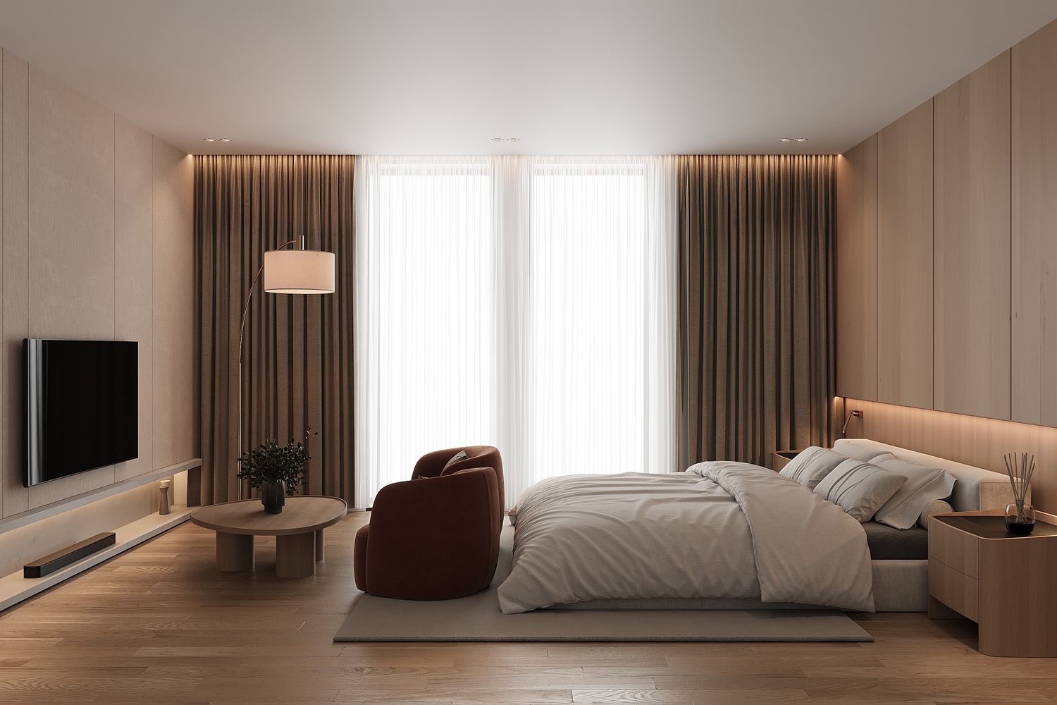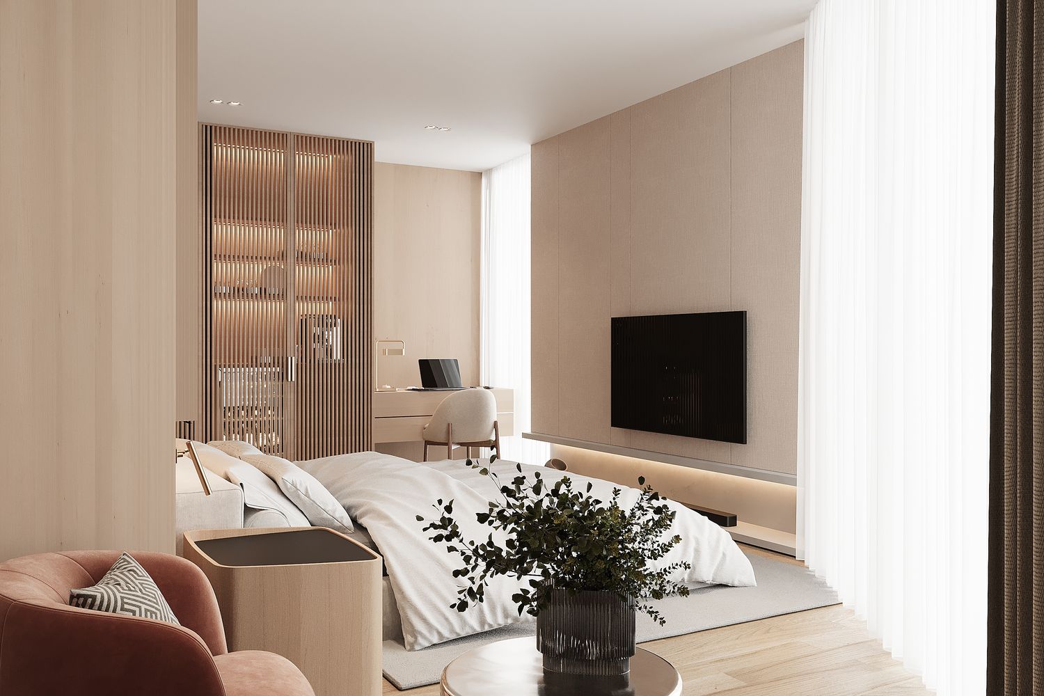 In this design, warm color tones have been carefully selected to create a comfortable and welcoming atmosphere, allowing guests to feel relaxed and experience a sense of being at home.