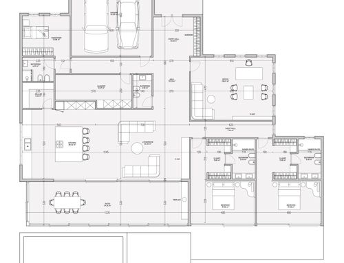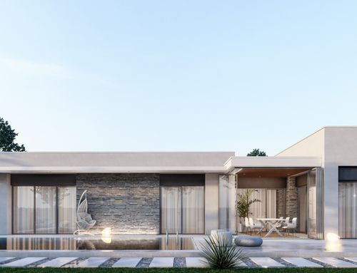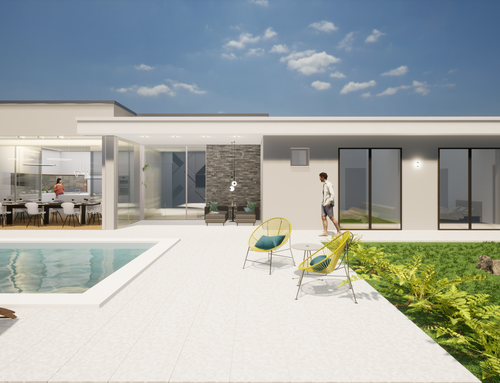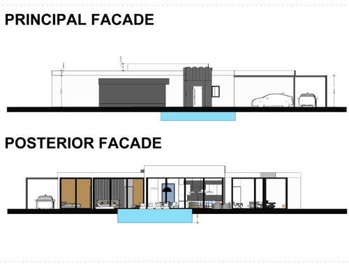 Quiero construir una casa en un solo nivel sin escalon de 250 m2 máximo, con una piscina en frente, una cocina grande con sala de estar, sala de estar, 2 dormitorios principales, 2 baños principales y 1 baño de visitas, un estudio con sofá cama y sala de TV, una gran lavandería, 1 dormitorio con baño para la empleada doméstica, una habitación para armarios, 2 plazas de aparcamiento cubiertas y un techo para 3 plazas de aparcamiento descubiertas, amplio techo en frente de la cocina y la piscina con una gran mesa de comedor y sofás, todo que se pueda cerrar en las estaciones más frías con una ventana. Desde la calle me gustaría que solo estuvieran las plazas de aparcamiento, el garaje y la puerta de entrada y que la casa estuviera toda orientada al sur.