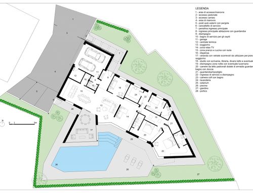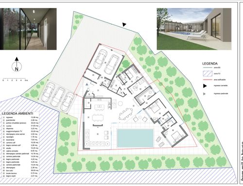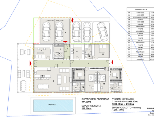 Voglio fare una casa su un unico piano senza uno scalino da 250 mq max, con la piscina davanti , un grande cucina con soggiorno, salotto, 2 camere da letto padronali , 2 bagni padronali e 1 bagnetto ospiti, uno studio che un divano letto e sala tv, una lavanderia grande , 1 camera da letto con bagno per la colf, una stanza per armadi , 2 posti auto coperti e tettoia per 3 posti auto scoperti , ampia tettoia di fronte alla cucina e piscina con un grande tavolo per mangiare e divanetti, il tutto richiudibile nelle stagioni più fredde con una vetrata. dalla strada vorrei solo i posti auto, il garage e la porta di entrata e vorrei che la casa fosse tutto rivolta verso sud .