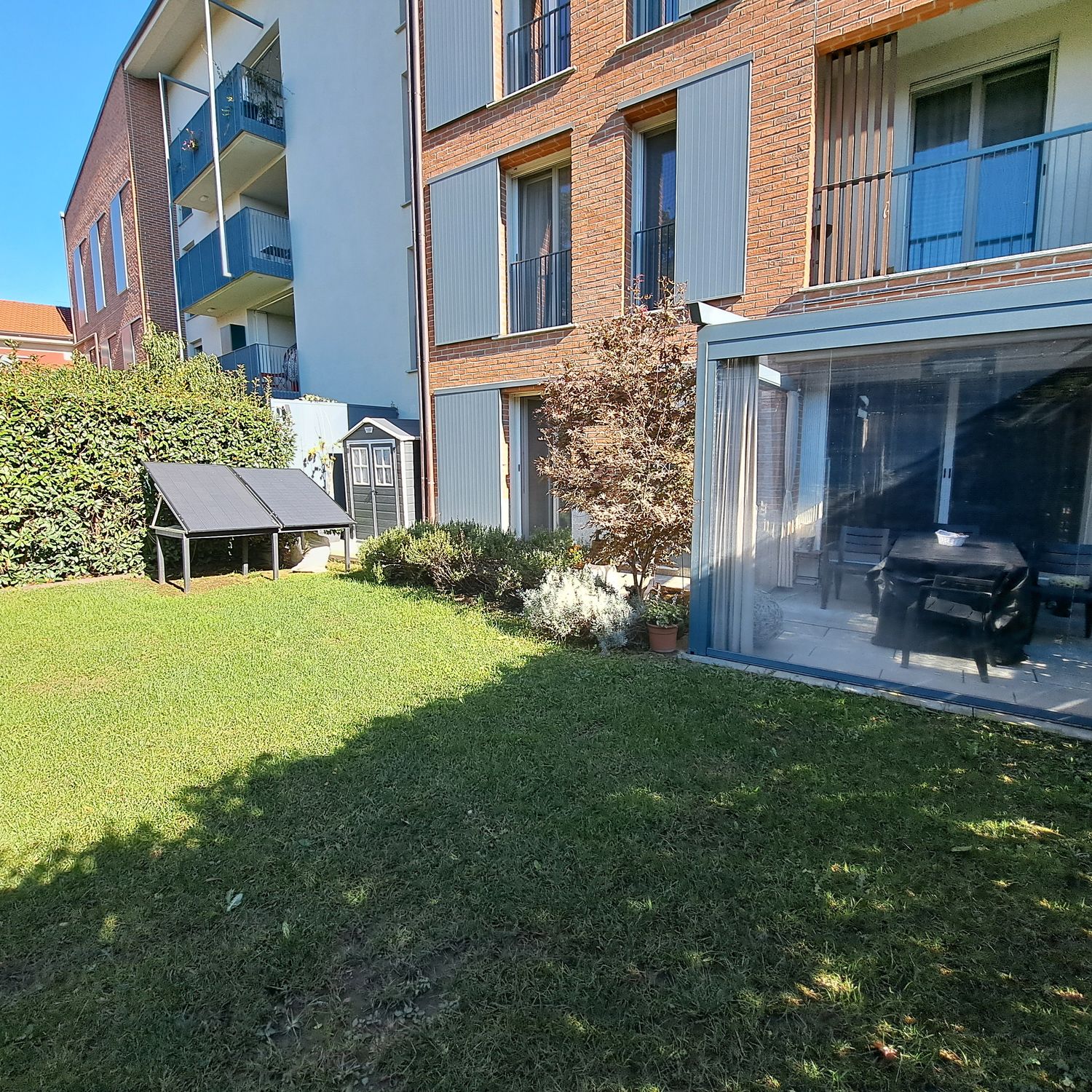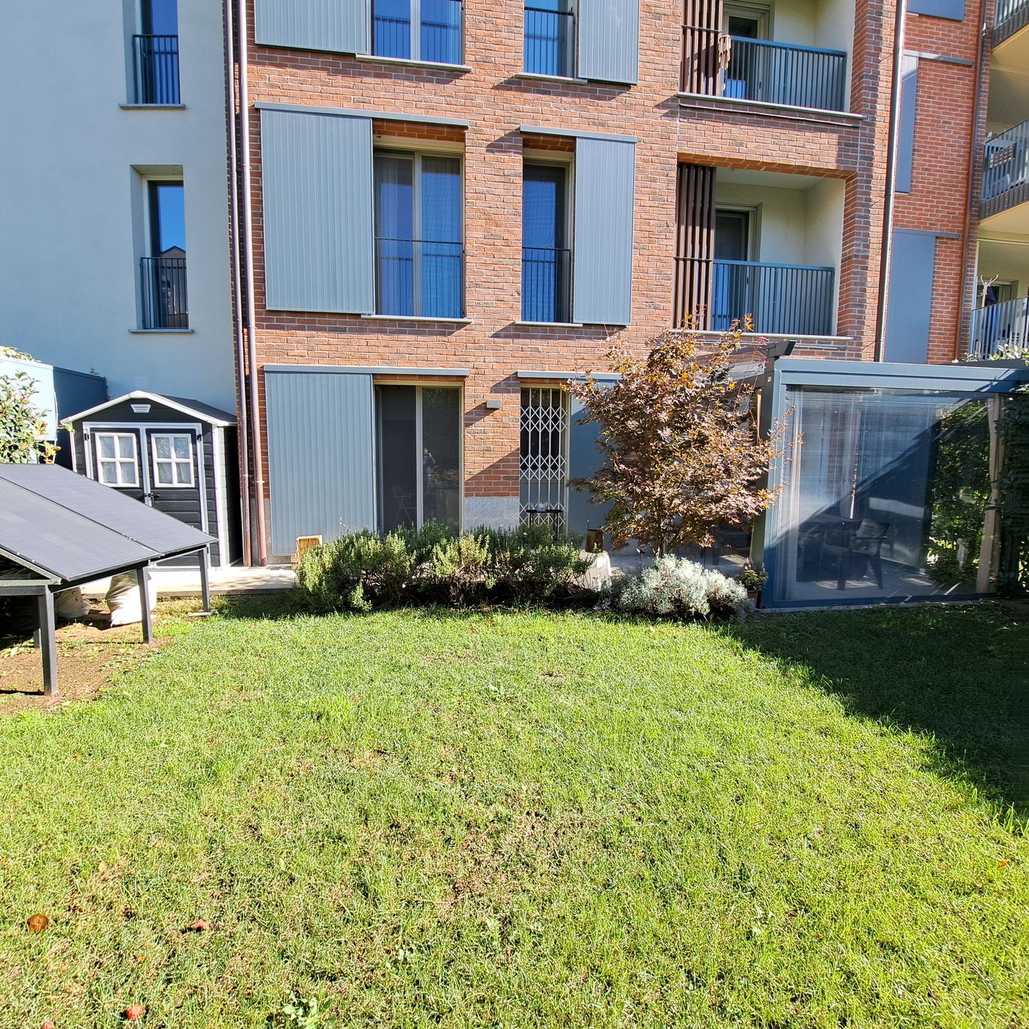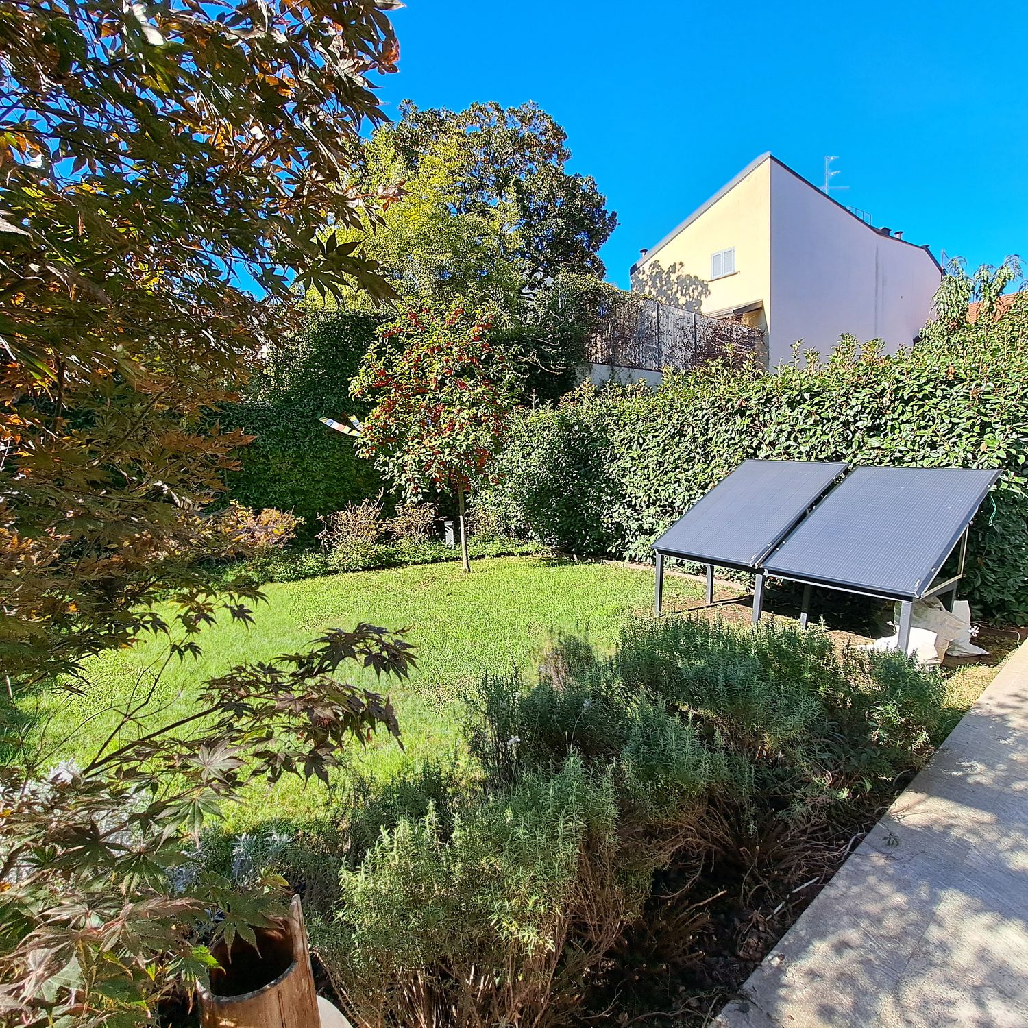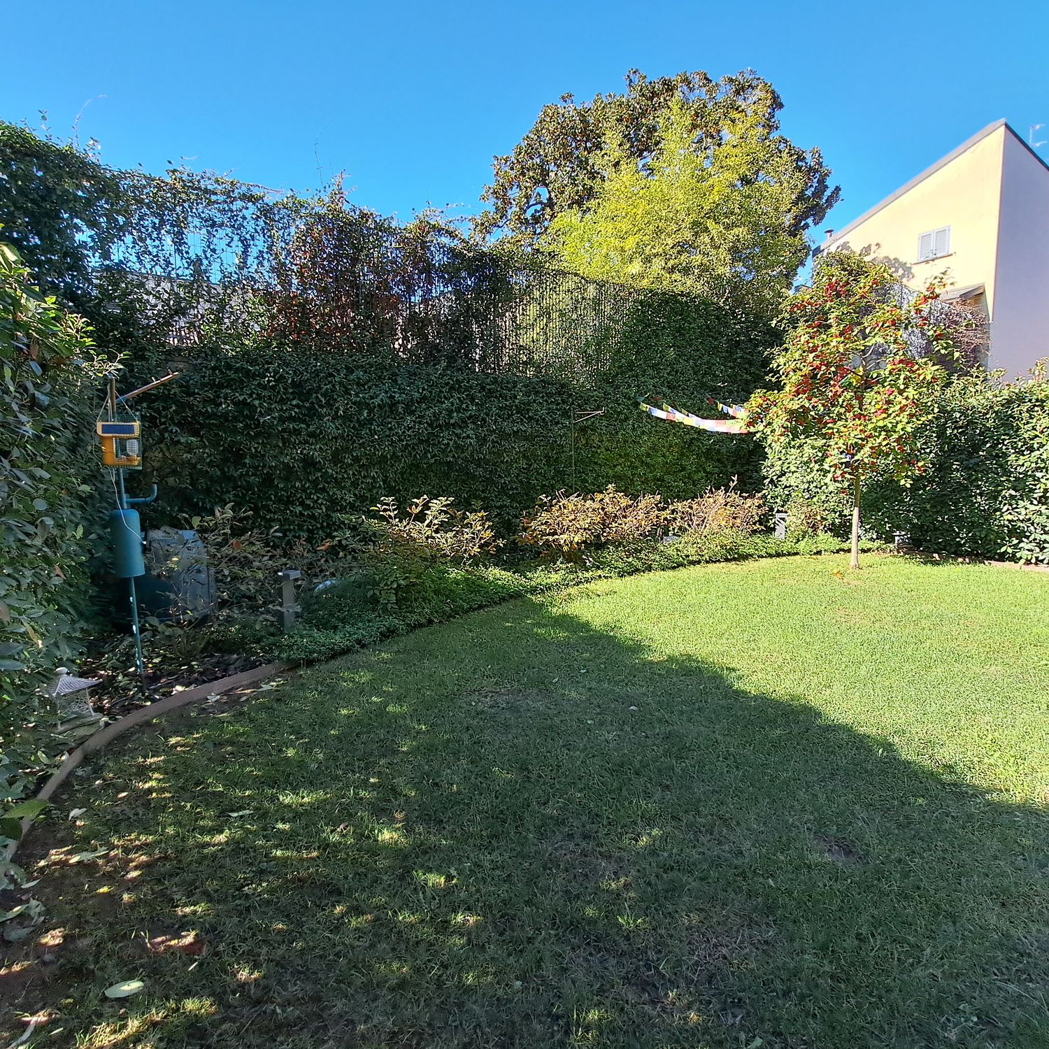 Mi piacerebbe inserire un mini stagno con piante acquatiche e una piccola fontana accanto al muro, un’area giochi per bambini, e sostituire il prato con un altro tipo di pianta o con ghiaia/pietre in stile giardino zen per risparmiare acqua. Durante l’estate il giardino riceve circa 9 ore di esposizione solare, dalle 11:00 alle 19:00.