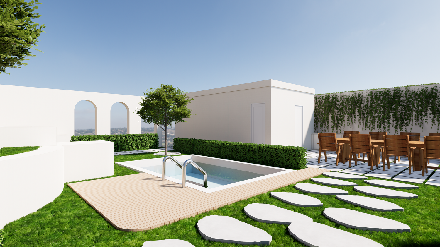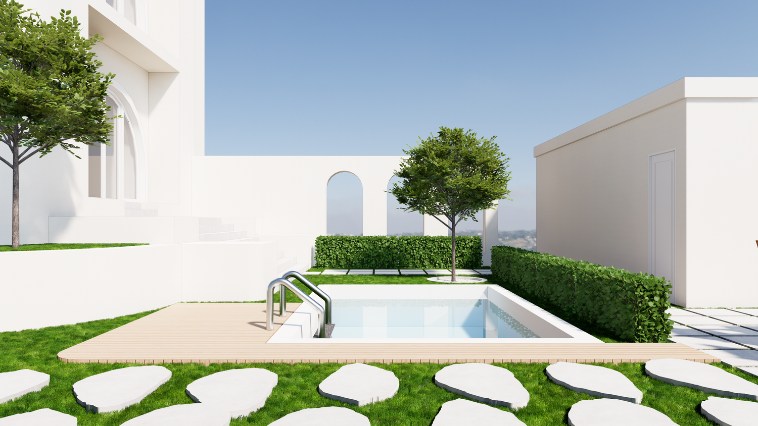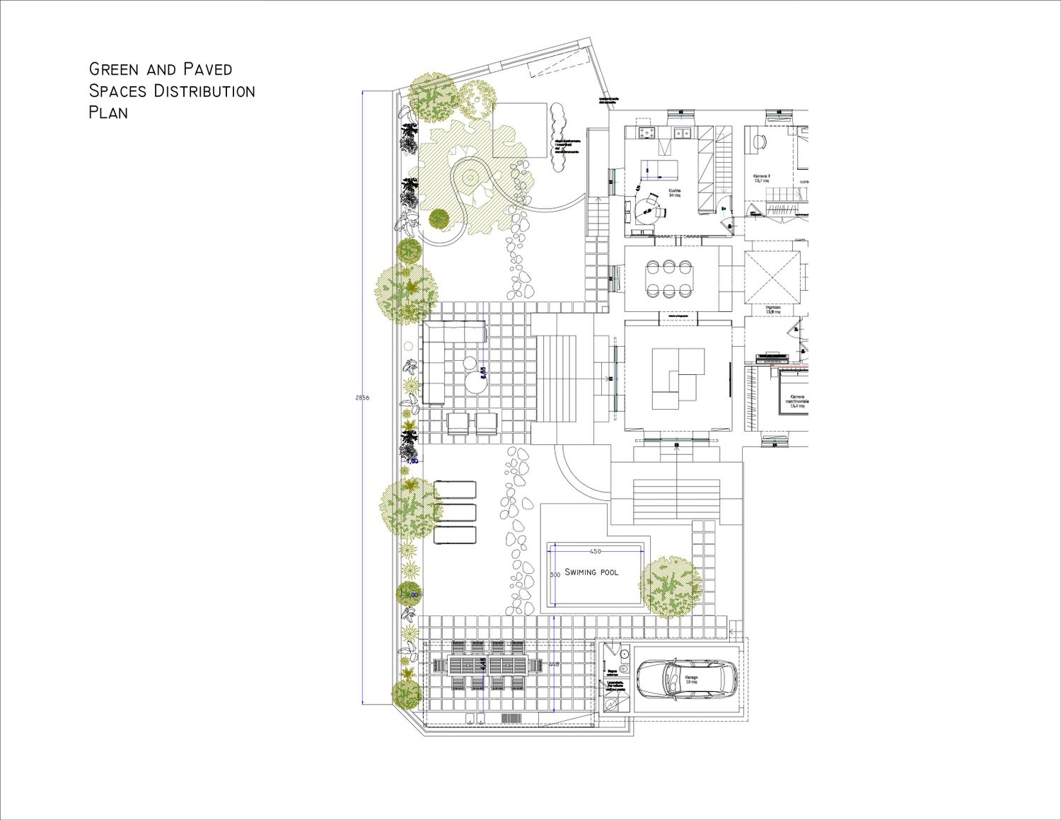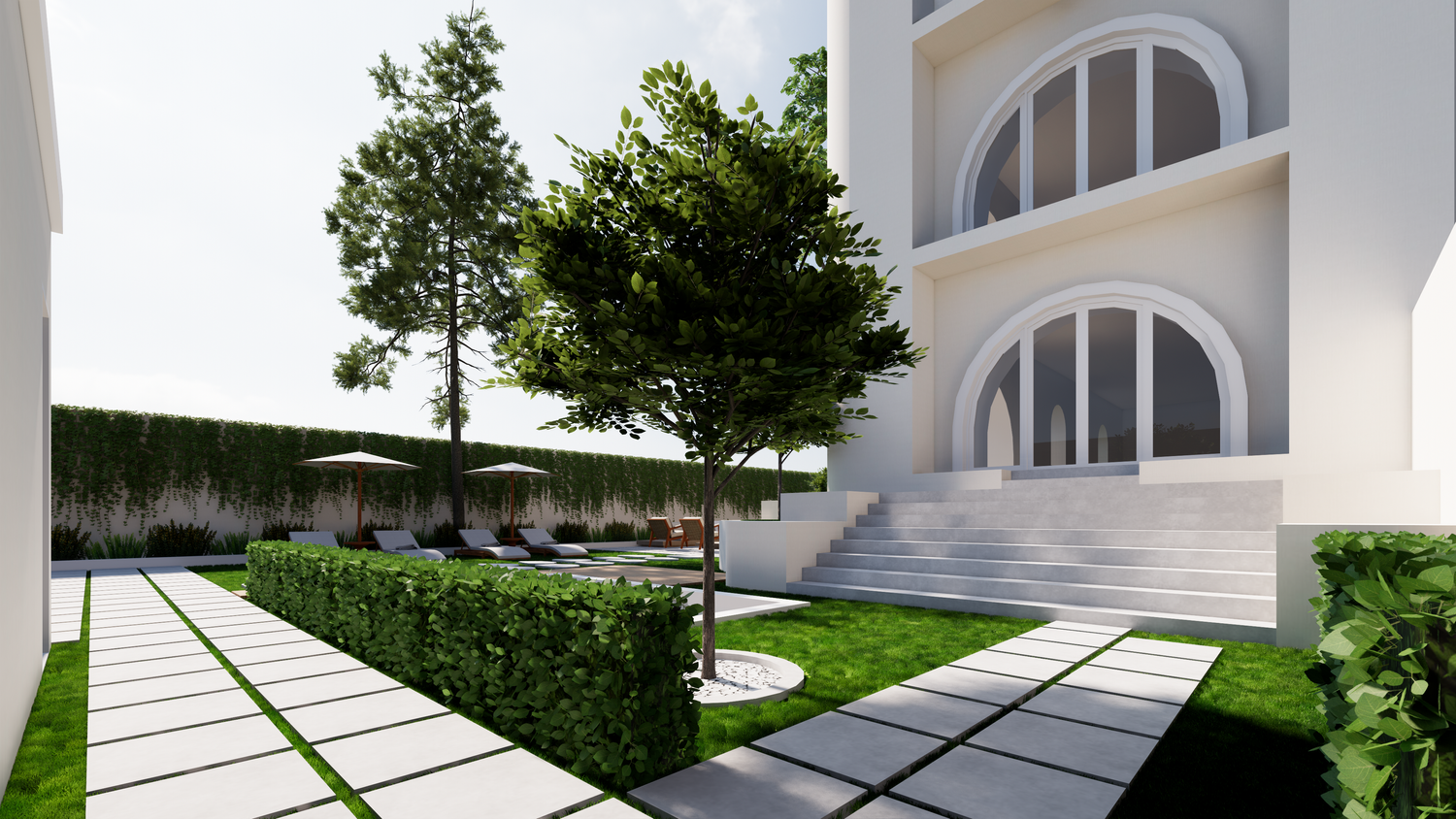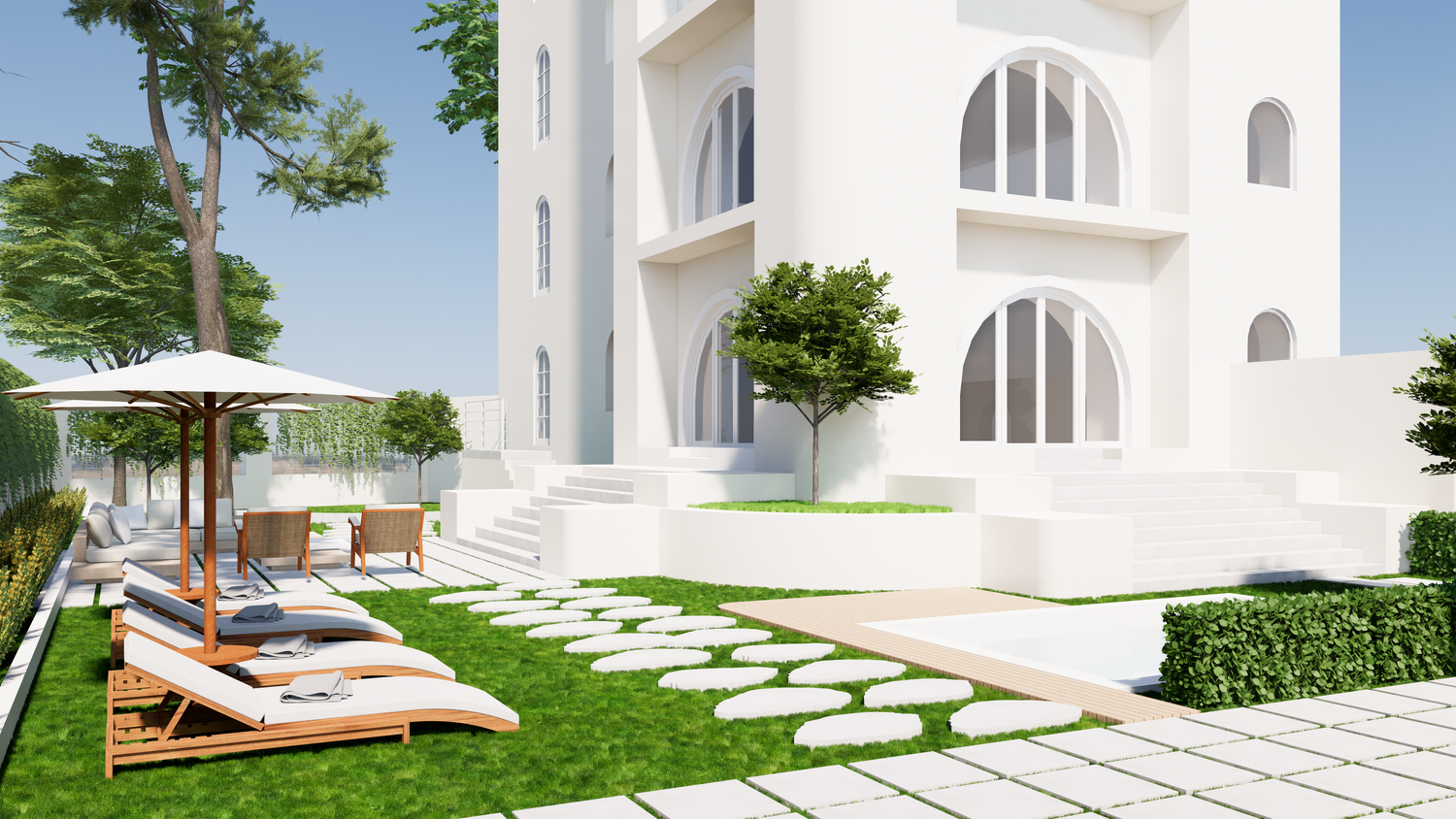 Thank you for this great project. I've attached my design. I created the 3D design based on the floor plan you sent. There are only a few differences, one of which is the addition of a 3x4m swimming pool, which I placed near the entrance.