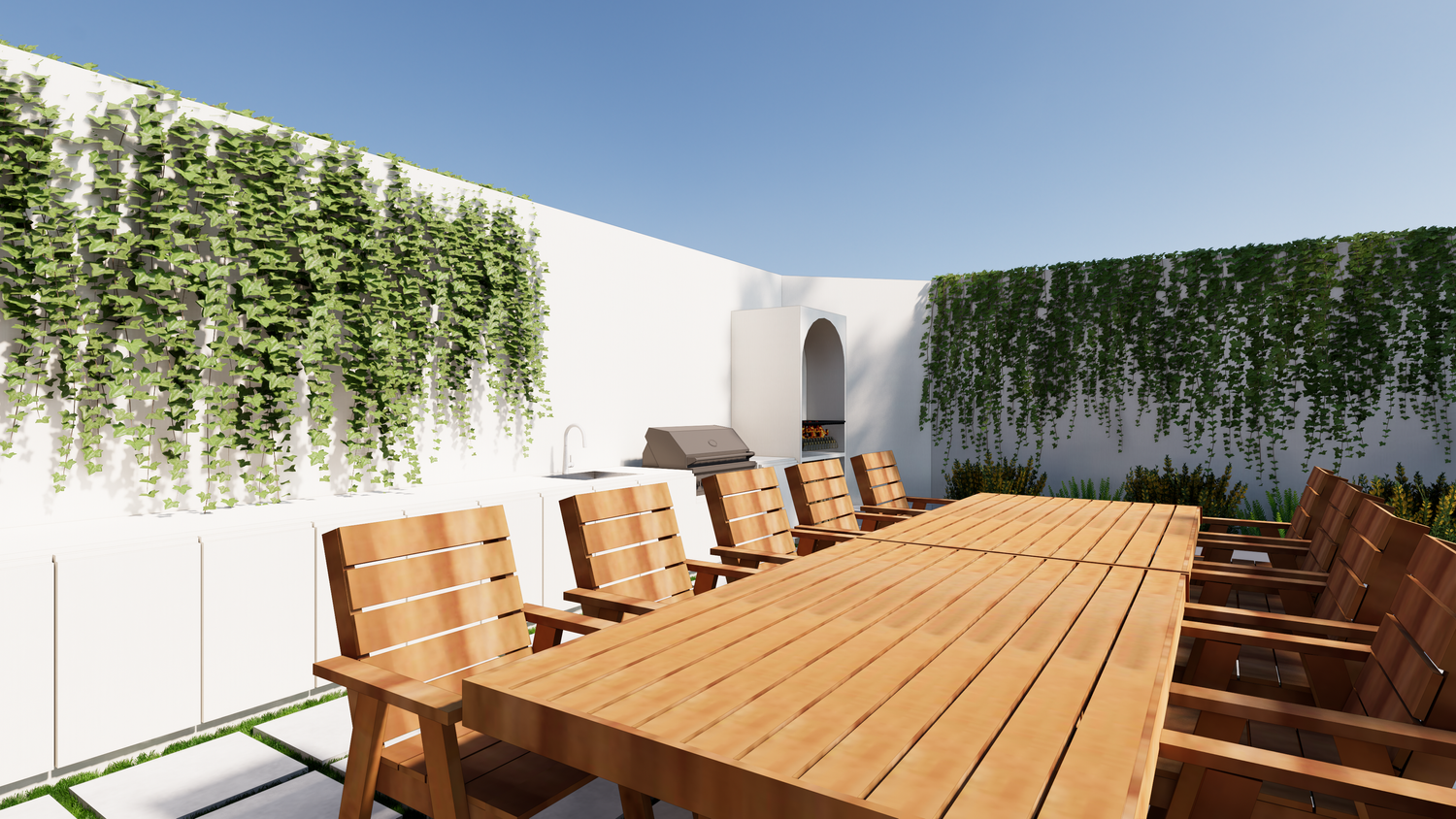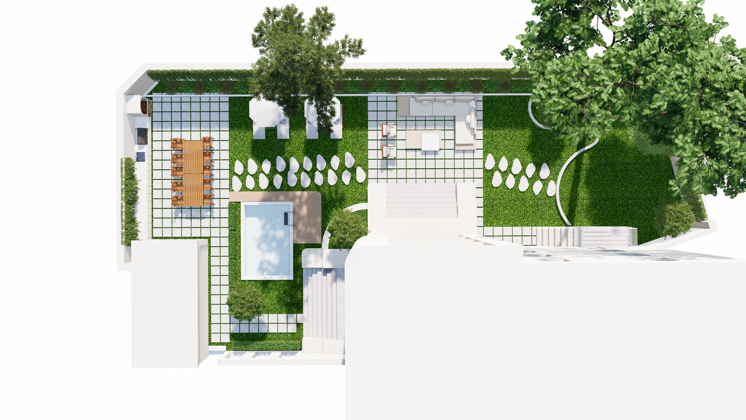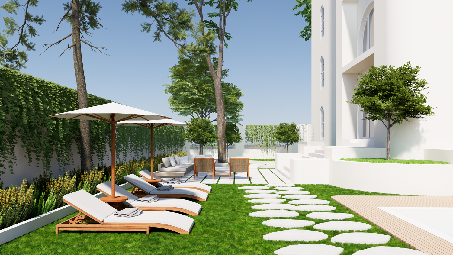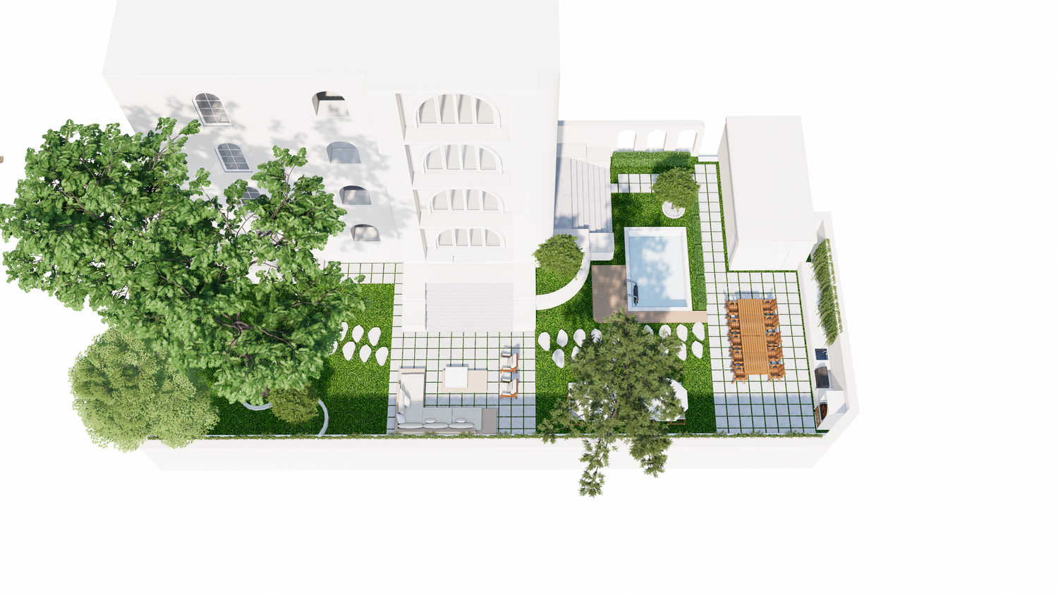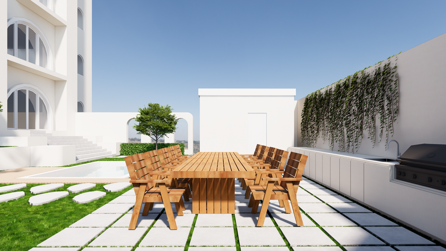 Thank you for this great project. I've attached my design. I created the 3D design based on the floor plan you sent. There are only a few differences, one of which is the addition of a 3x4m swimming pool, which I placed near the entrance.