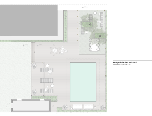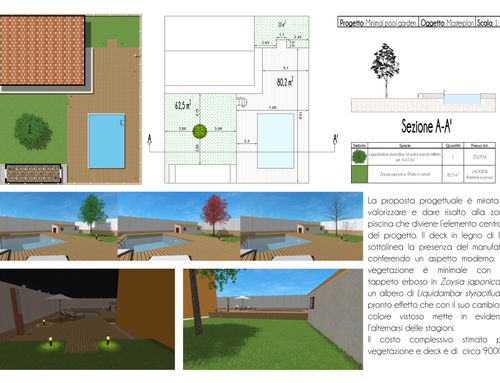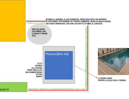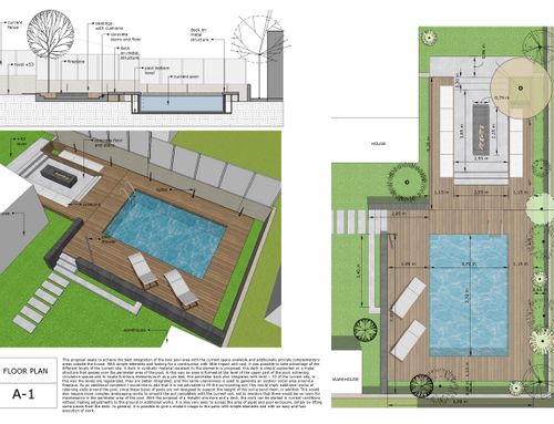 The goal will be to build a decking around the pool as well as fix up the yard/garden all around the pool. I would like to get the right compromise between the cost of materials and design for both the decking and the yard/garden. I would also like to have the decking removable to allow to explore the piping of the pool (reason why I thought to have a decking around the pool). The decking can be either wood (ipe' or teak) or WPC. Overall I like the modern style with the presence of the wood and the main expectation is to have a WoW effect considering the environment around. additionally I would like that the decking is in line with the ground in order to have a "inground pool"