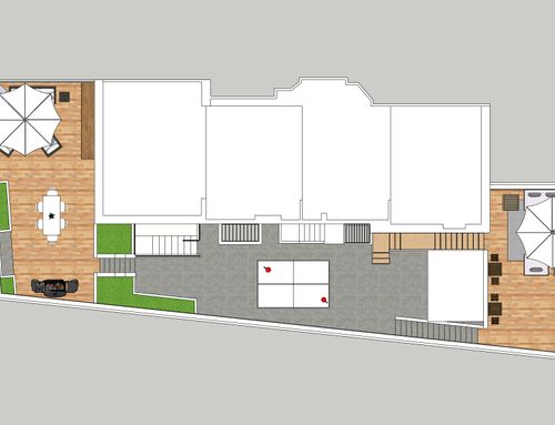 We would like to have some relax areas, a place to eat or have a drink with friends, a place to cook outside (with our beloved BBQ that is 145x60) and still keep enough space for our 3 kids to play outside.