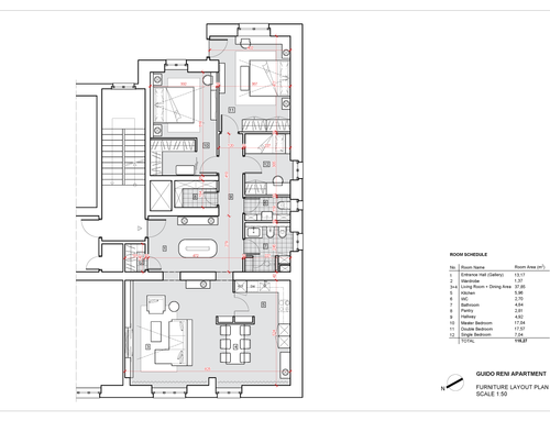 I will be living in this apartment alone (possibly with someone else in the future). I am a collector and own many paintings. I would like the apartment to have a style inspired by Scandinavian design or something similar to Apple stores: minimal furniture and clean, essential lines.