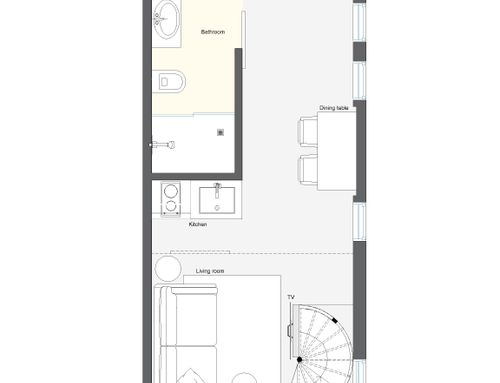 L'angolo cottura dovrebbe essere compatto ma perfettamente funzionante, con particolare attenzione agli elettrodomestici moderni e alle soluzioni di deposito. Vogliamo creare uno spazio efficiente che integri il design generale della stanza.