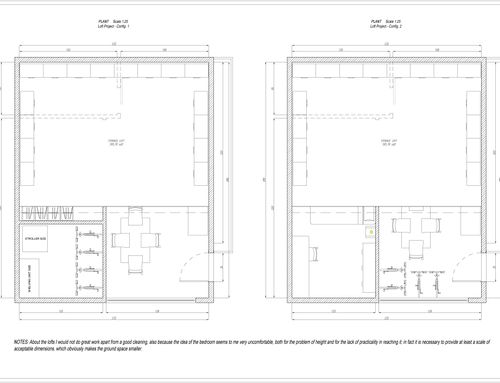 - An attic/loft space for storage. I want to prioritize the comfort and openness of the living space, but, considering the height of the building, and all the crap I have, I’ll need some storage space above the unit.