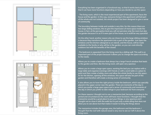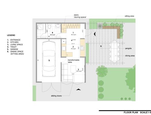 - Open the right-hand wall of the accessory unit to my yard with doors, windows, and maybe another garage door. I want this dwelling unit to feel as indoor/outdoor as possible. To this end, I'd like to open the wall that abuts my garden as much as possible to make for easy flow between the indoors and outdoors. I posted a picture in the ideabook section of a unit with a kitchen island and a transparent half-garage door, which opens to the outdoors. I was thinking a similar type of design could be possible for this dwelling unit. I’d like the yard to function as additional square footage. One way we could do this is to add a ground level patio on the outdoor side of the kitchen island that would function as the dining area. This way the interior space could be reserved for living, sleeping, and bathing.