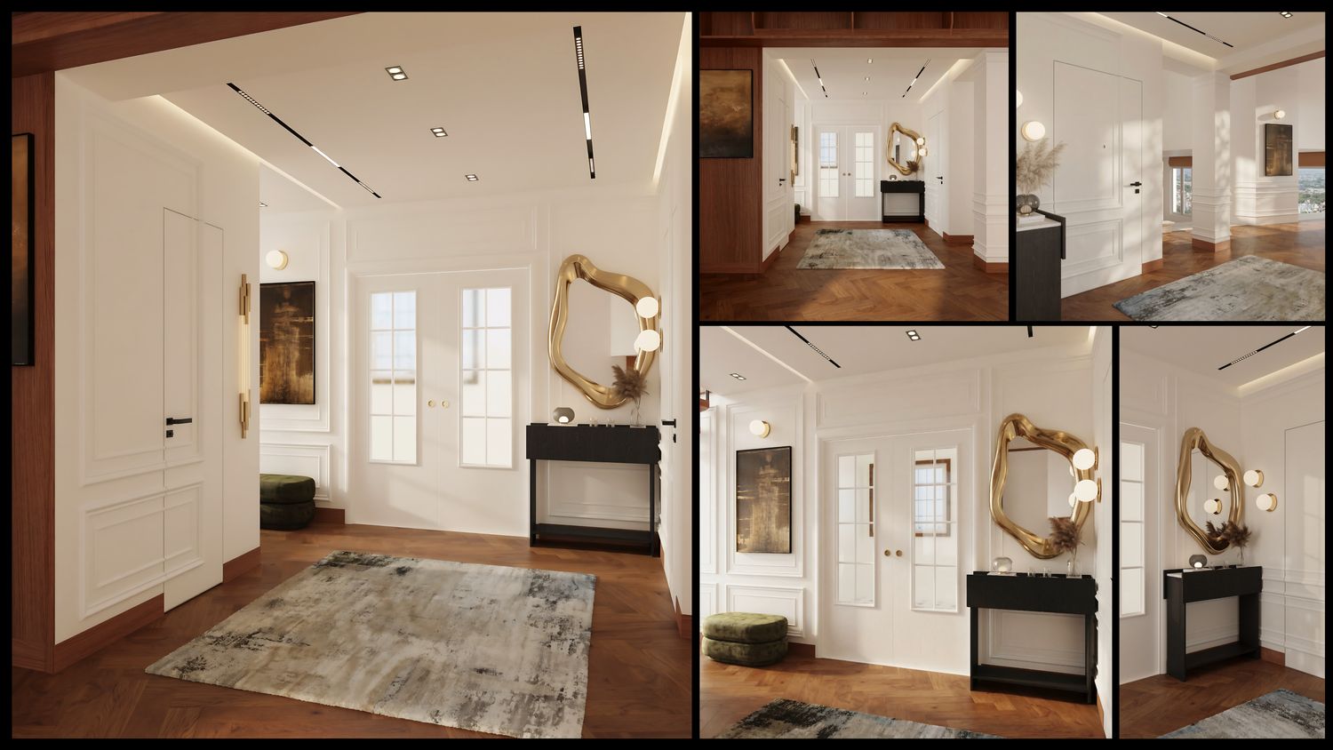L’intervento si limita esclusivamente all’area d’ingresso, preservando i pavimenti esistenti e le connessioni con la cucina. Per conferire maggiore identità architettonica e coerenza visiva, sono stati ripensati i rivestimenti murali e il sistema di illuminazione.