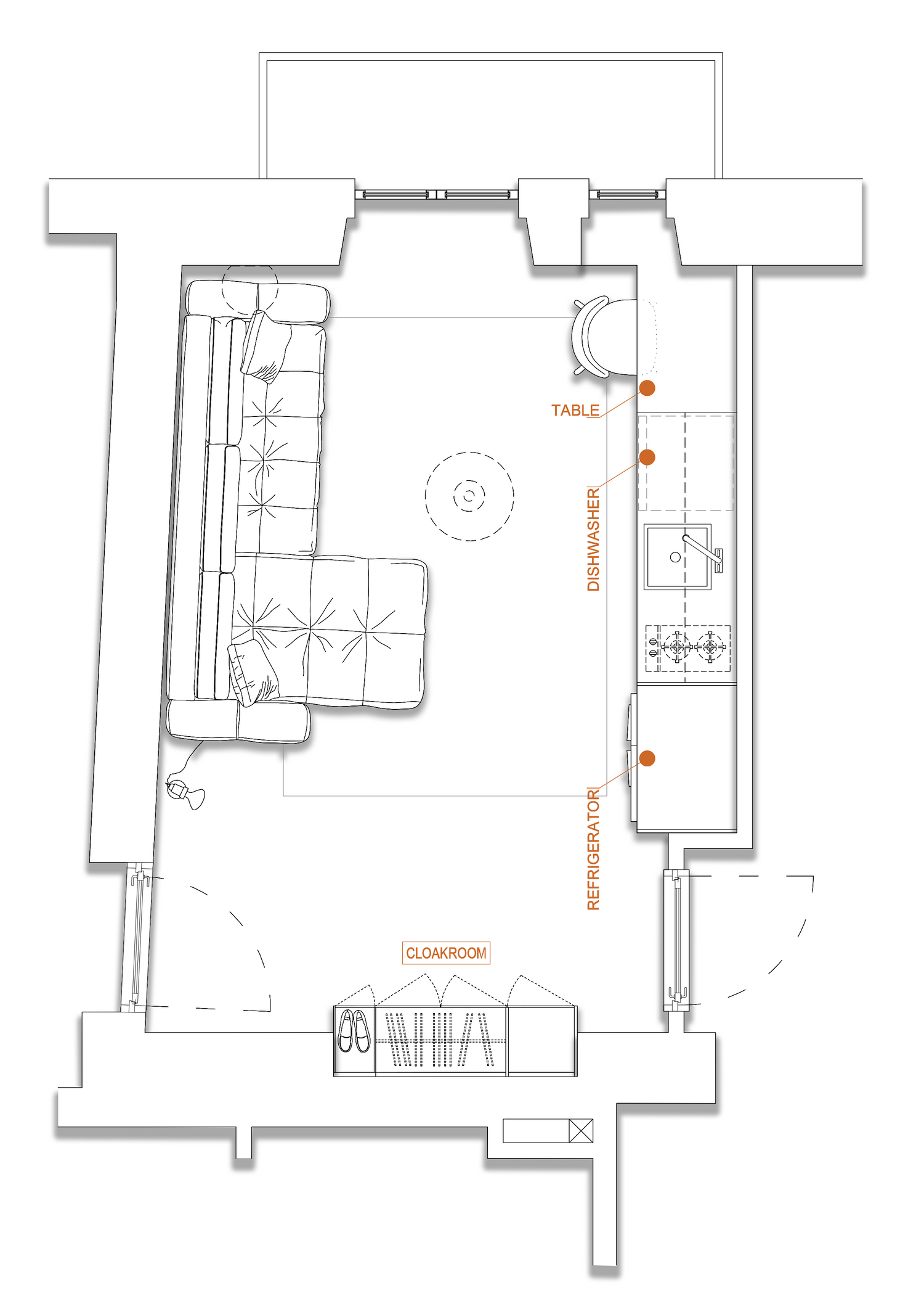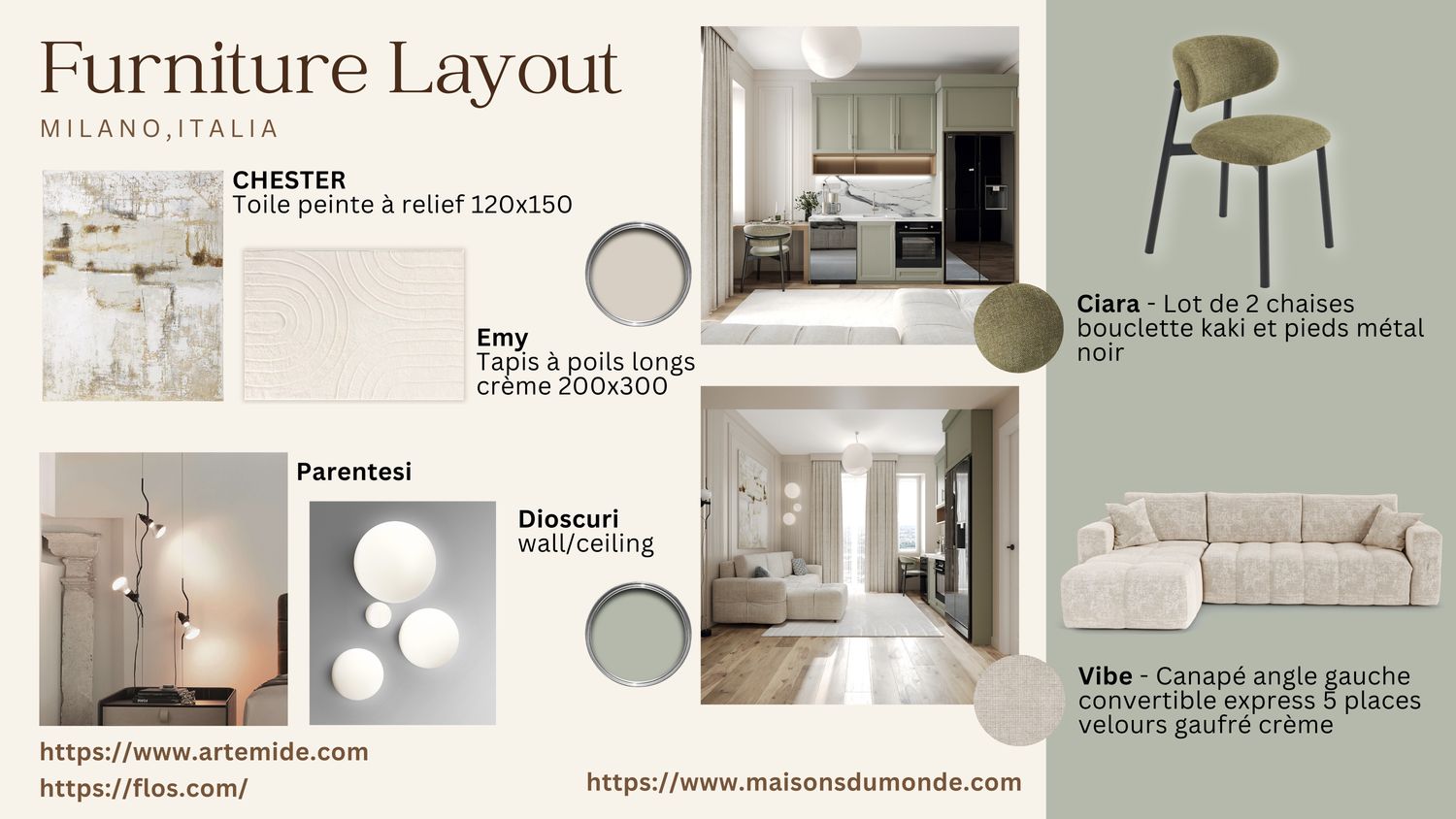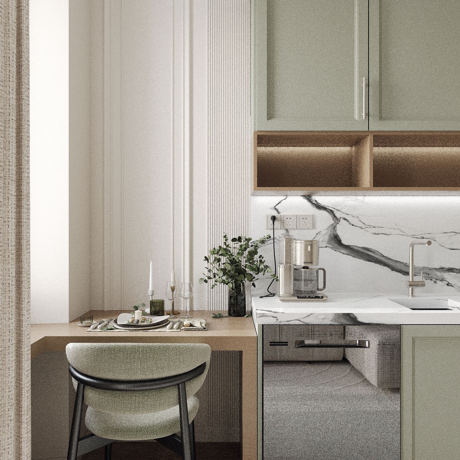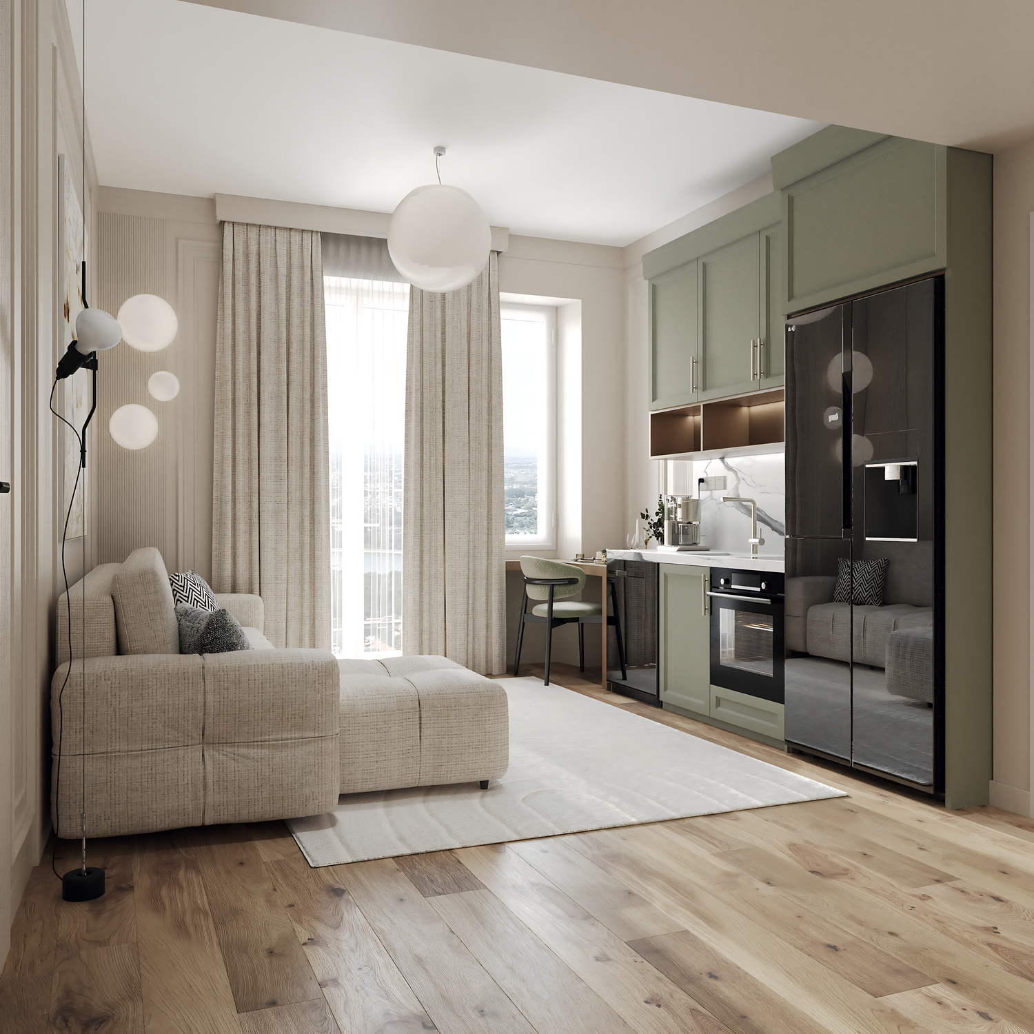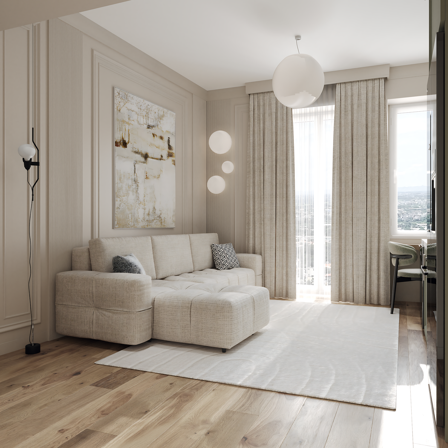 This project transforms a compact living room with kitchenette into a modern, functional, and design-oriented interior. The aim was to create a space that feels elegant and comfortable for the client’s part-time living, while also being stylish and attractive for Airbnb guests.