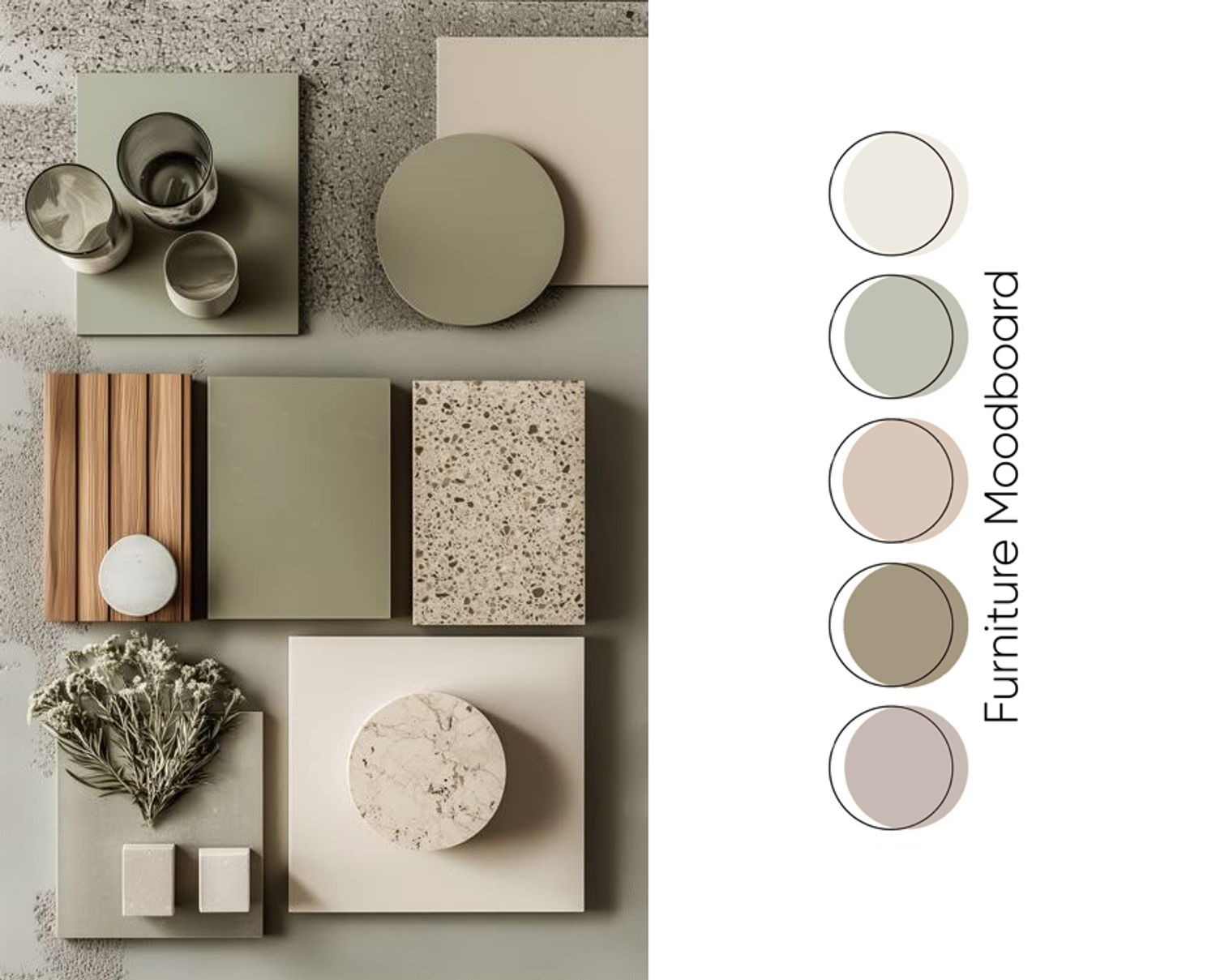 Per i mobili e il pannello a parete ho utilizzato i colori Farrow & Ball Mizzle e Scallop.