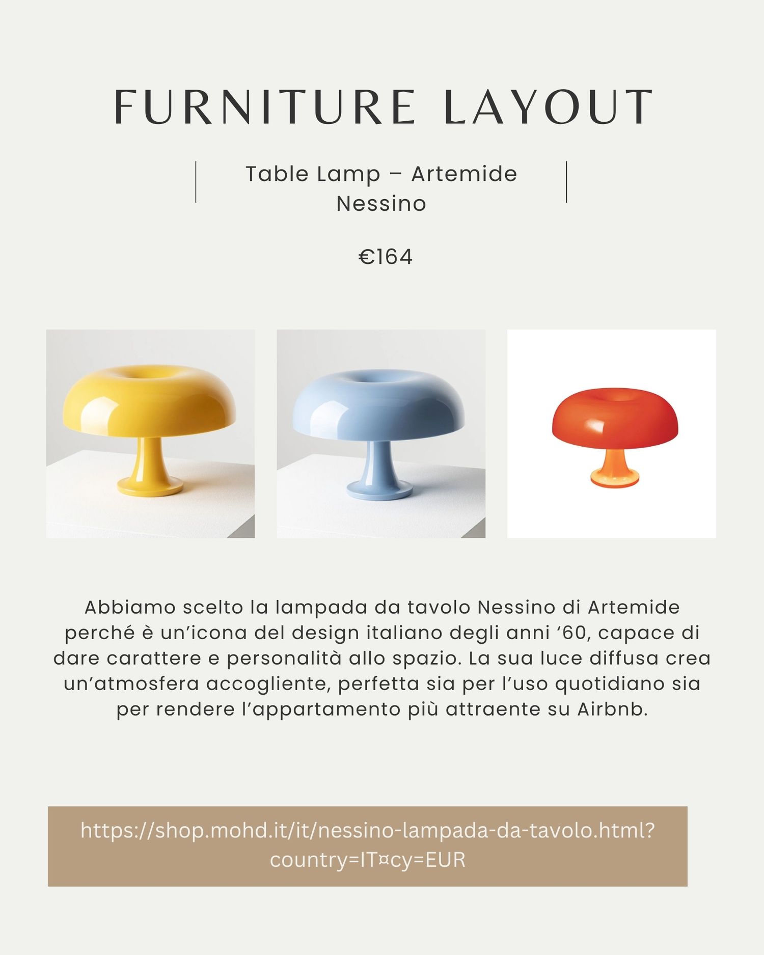 • La lampada Artemide Nessino aggiunge un tocco iconico di design italiano, creando un’atmosfera accogliente.