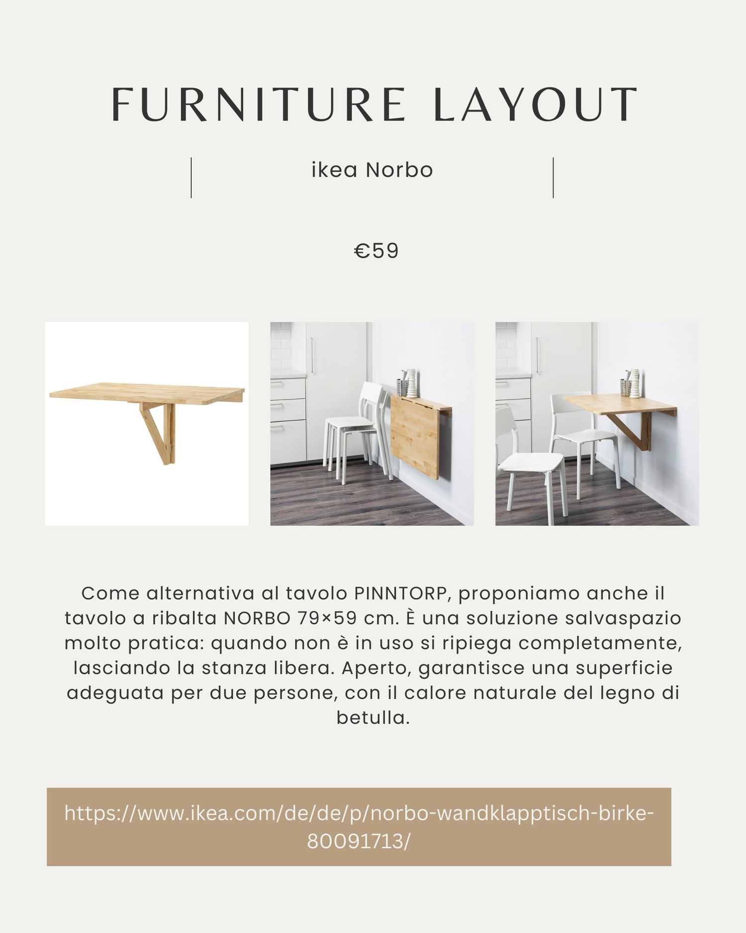 • Il tavolo a ribalta PINNTORP, con l’alternativa compatta NORBO, permette di adattare lo spazio a seconda delle esigenze, ottimizzando l’uso della stanza.