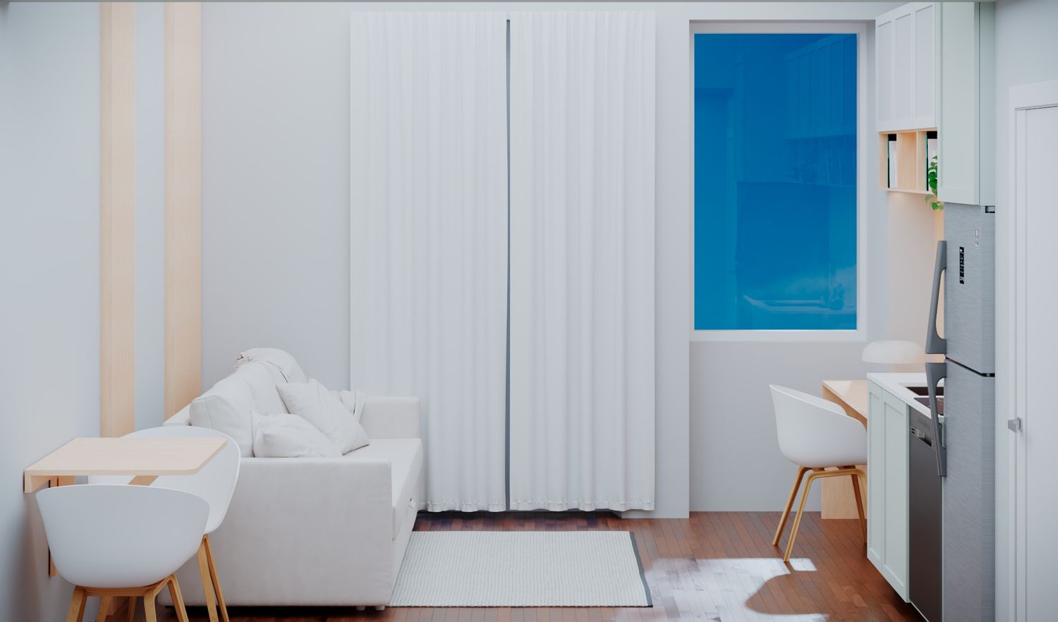 Interior design living room con angolo cottura