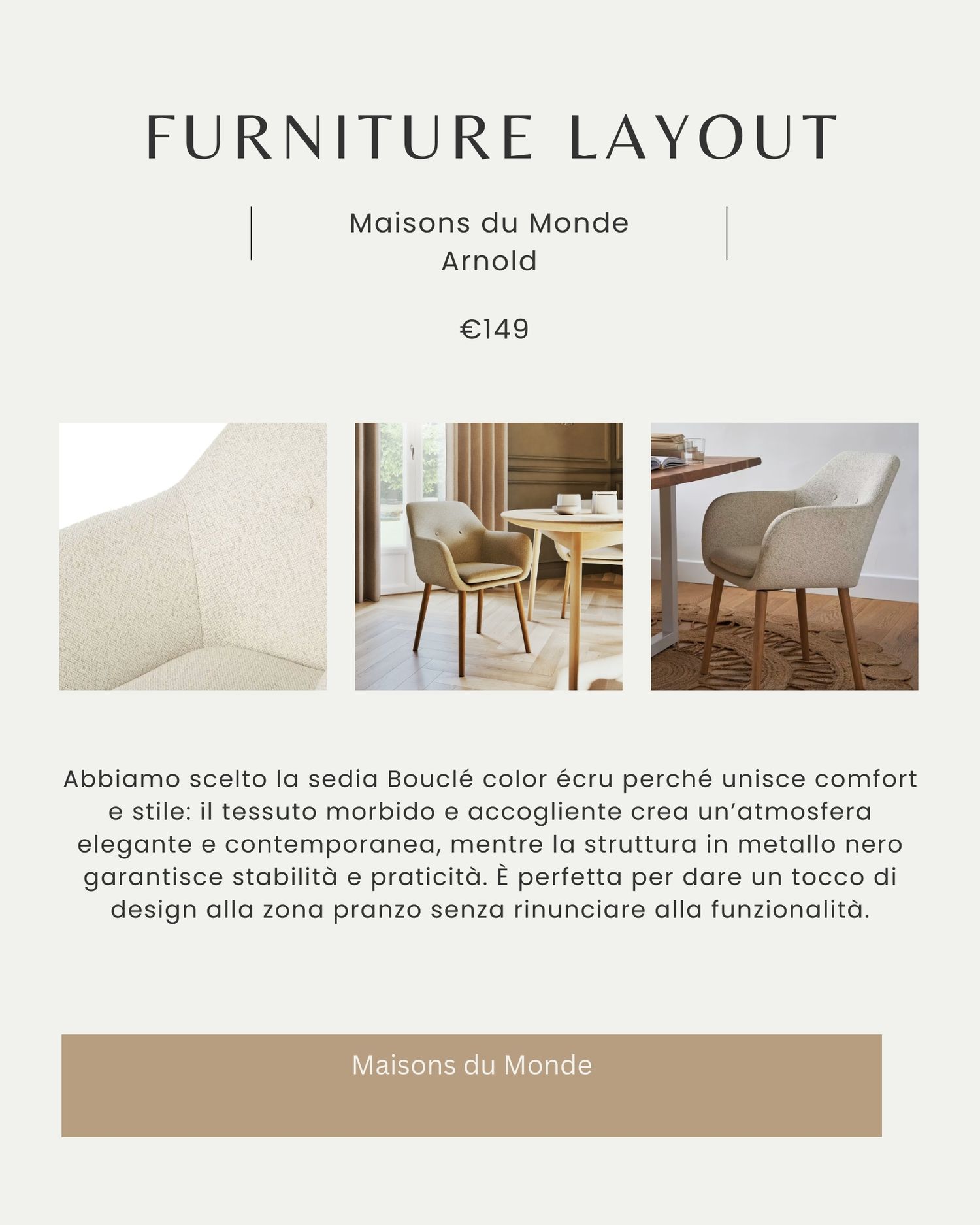 • Le sedie Bouclé écru uniscono stile e comodità, con un tessuto morbido e una struttura stabile.