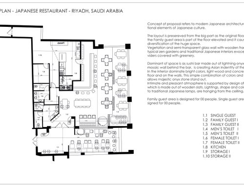 The restaurant is located in a strip mall. It's a Japanese restaurant that will be a dine in. the goal is to create a creative design for luxurious cozy place.